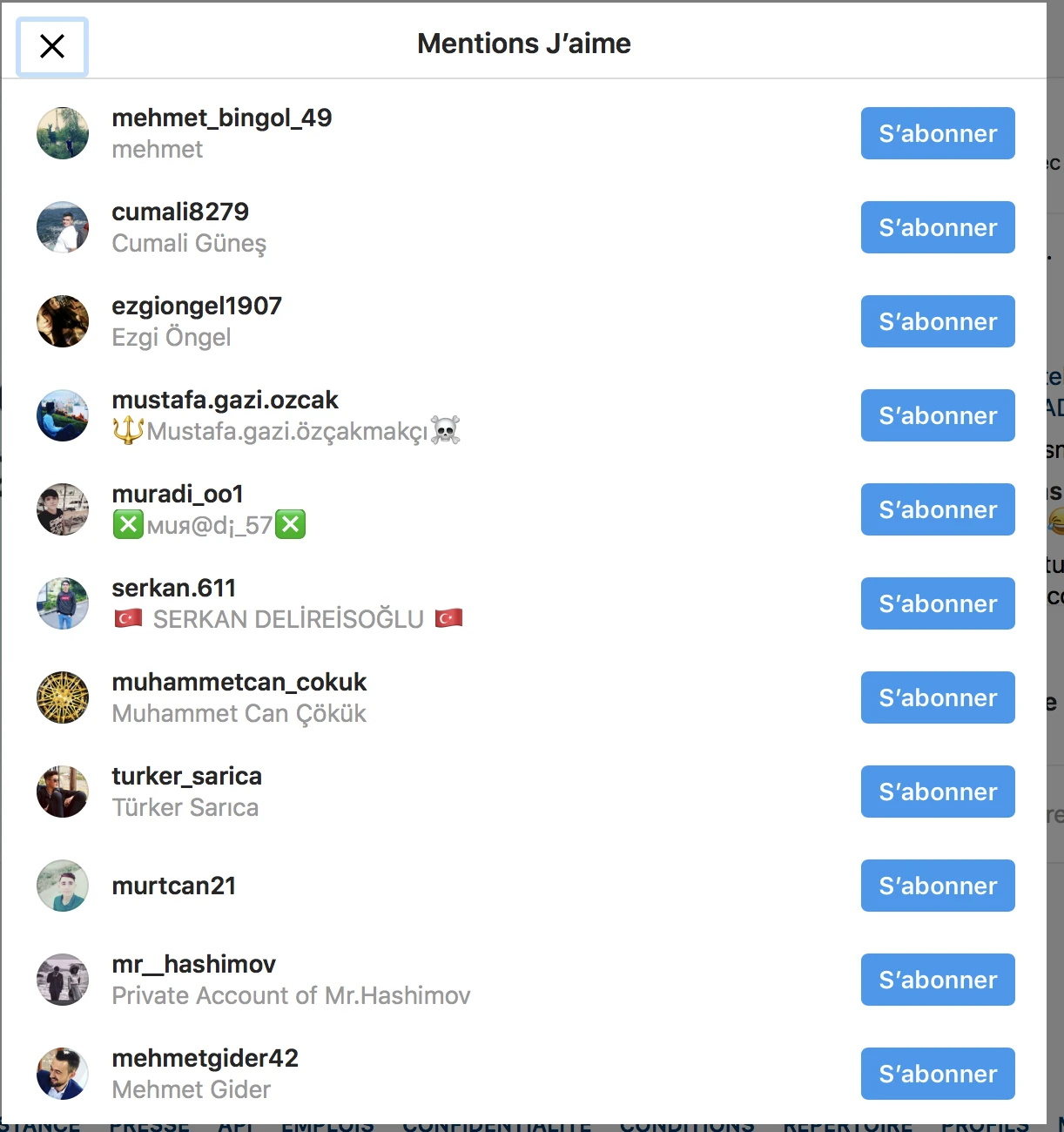 En cliquant sur la liste des 2 600 usagers à avoir fait un coeur, on peut déceler que quelque chose cloche dans la liste des noms :