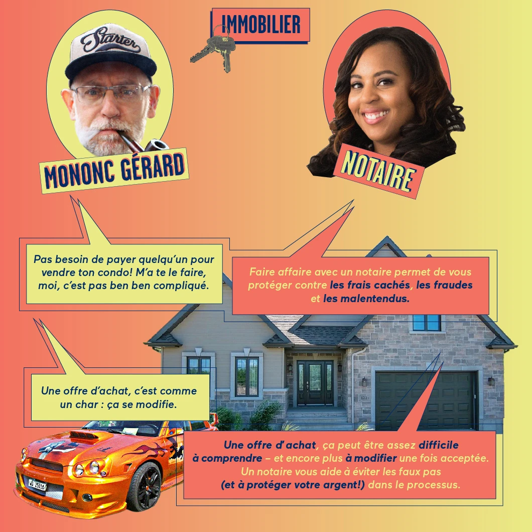 Avec un notaire, vous êtes certains de recevoir de bons conseils… et d’éviter des pépins plates (et coûteux!) dans l’avenir.