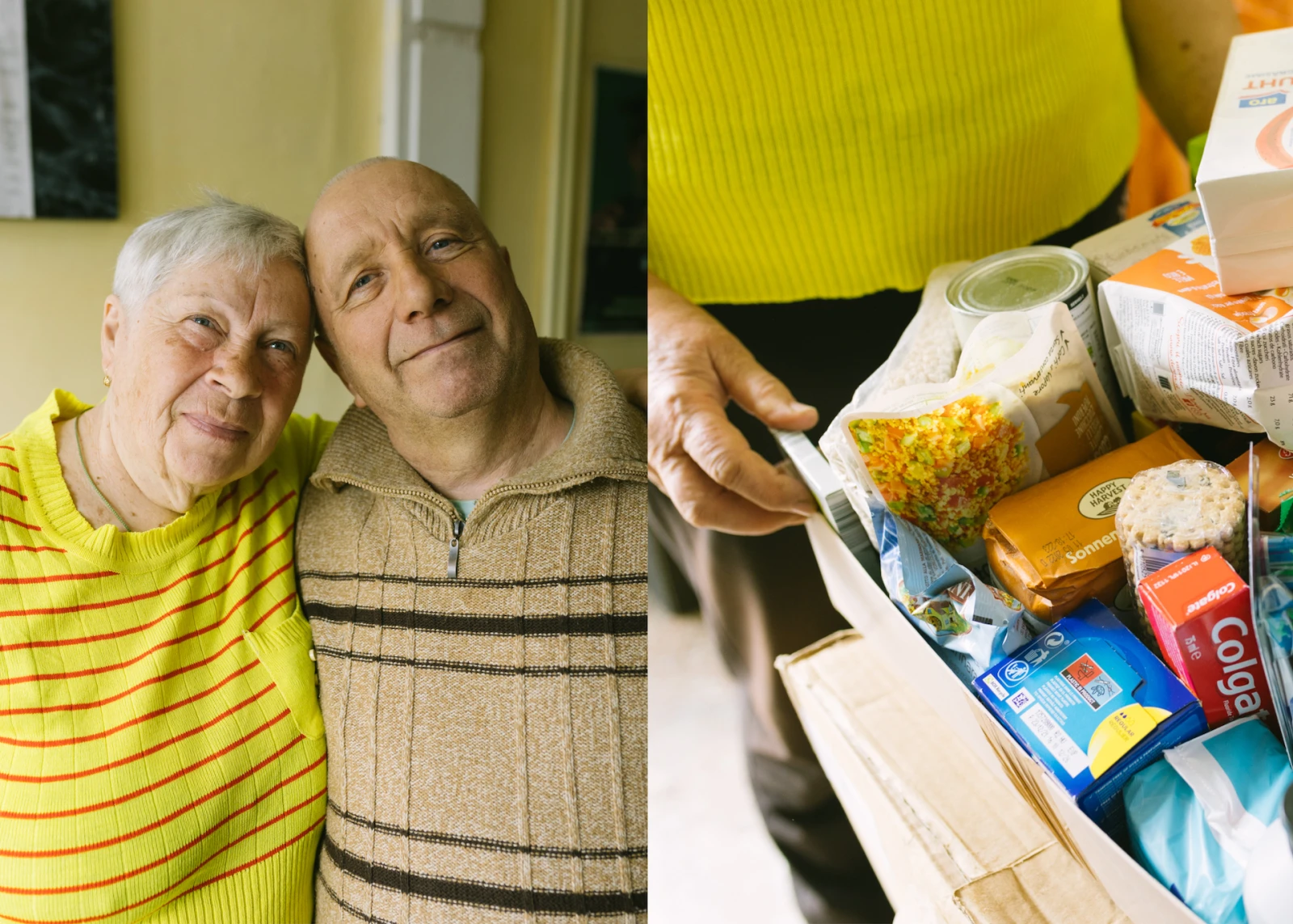 Luba et Nicolai, de Kyiv, n’ont pas pu apporter d’objets au-delà des vêtements qu’ils portent sur ces photos. Nicolai n’a même pas eu le temps de prendre ses lunettes. Il a de la difficulté à me voir.