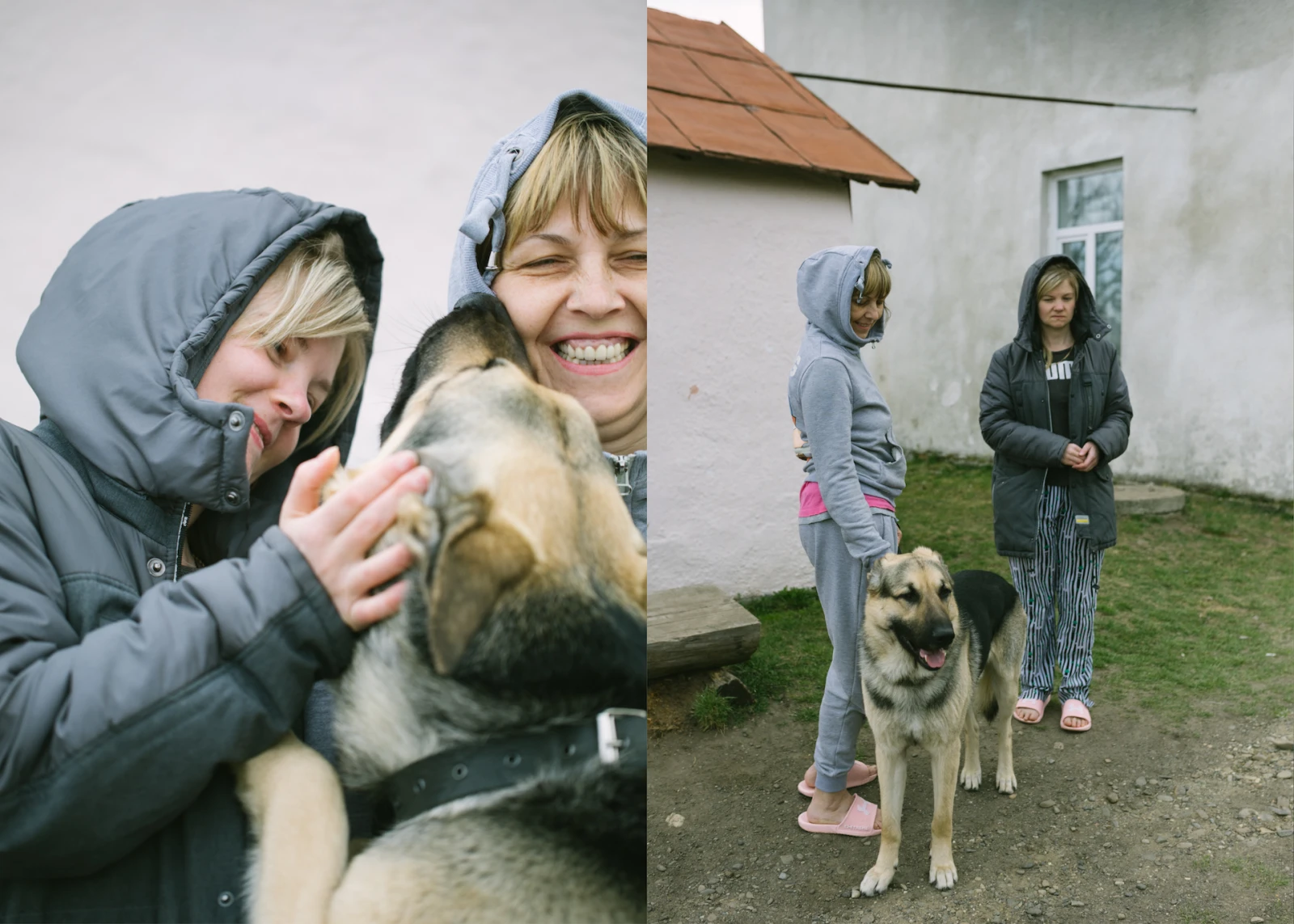 Olga se met à pleurer quand ils me présentent ce qu’il leur reste de plus précieux : leur chien Chiba. Devant mon incompréhension, Vlada tape quelque chose sur son téléphone, puis me montre la traduction sur son écran : « Elle avait un élevage de vingt chiens, ils sont tous morts. »