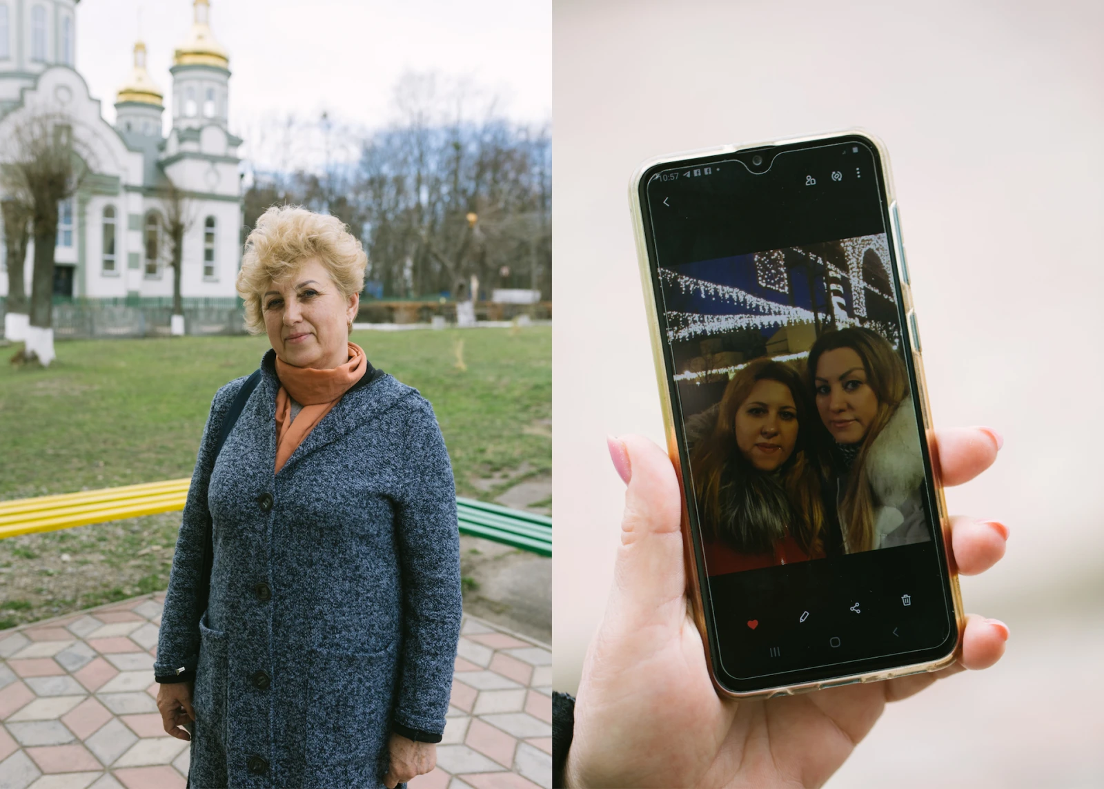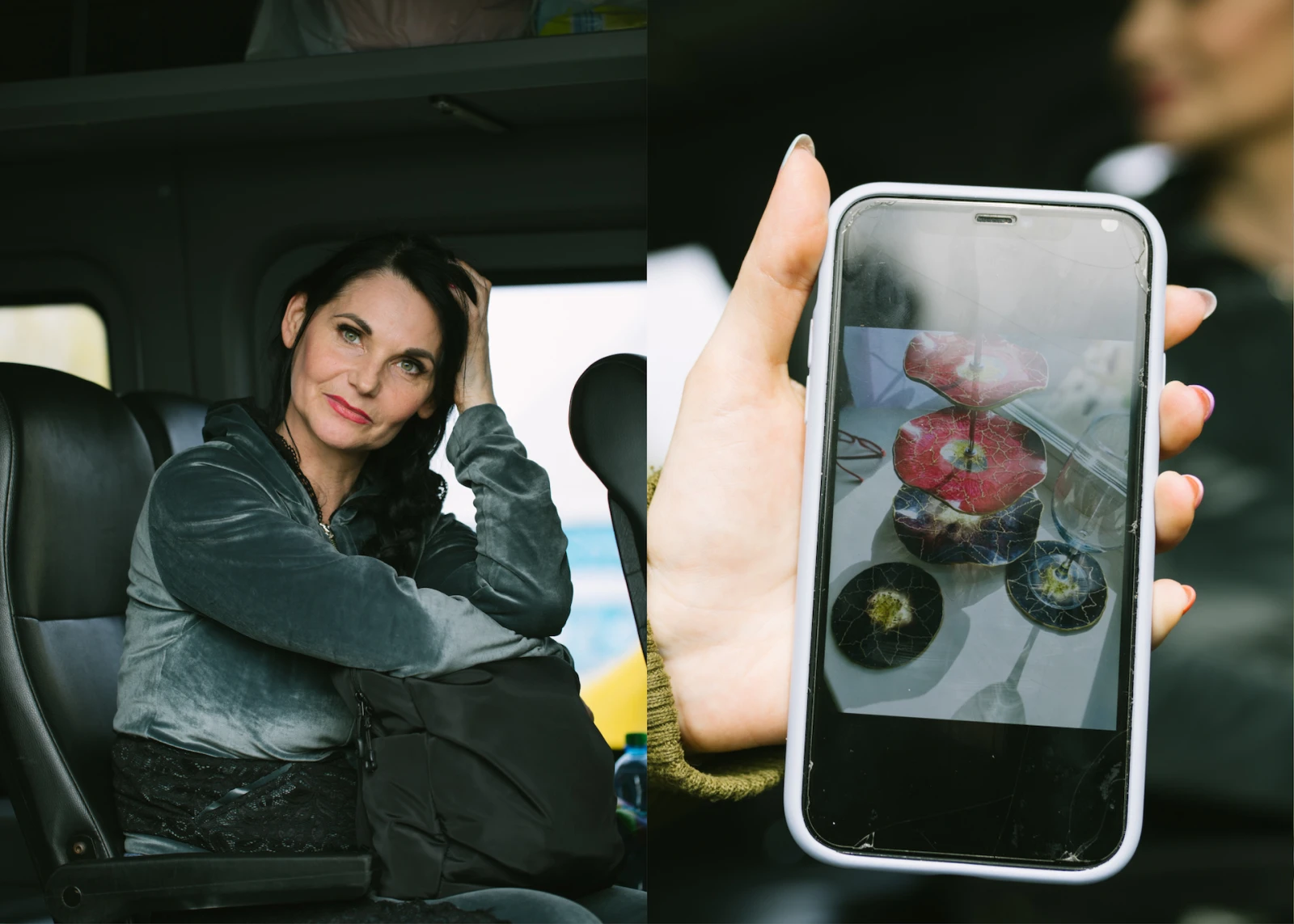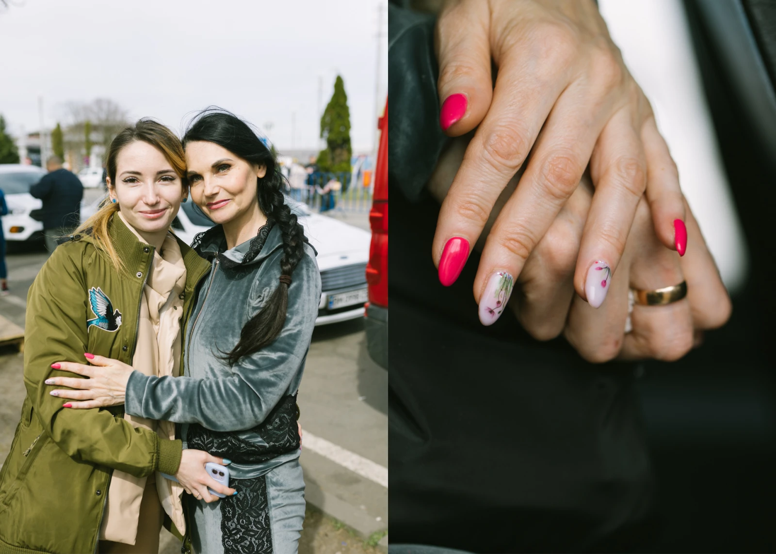 Je remarque Ruslana et Antonia, mère et fille, alors qu’elles attendent dans une fourgonnette pour quitter la frontière vers la gare en direction de l’Allemagne. Elles sont magnifiques : souriantes, bien vêtues, coiffées et manucurées. Ruslana m’explique qu’elle est esthéticienne, qu’elle s’est occupée de choyer sa mère sur la route.