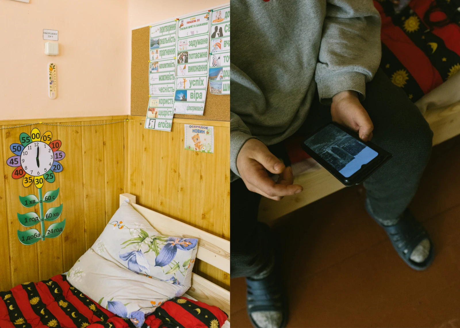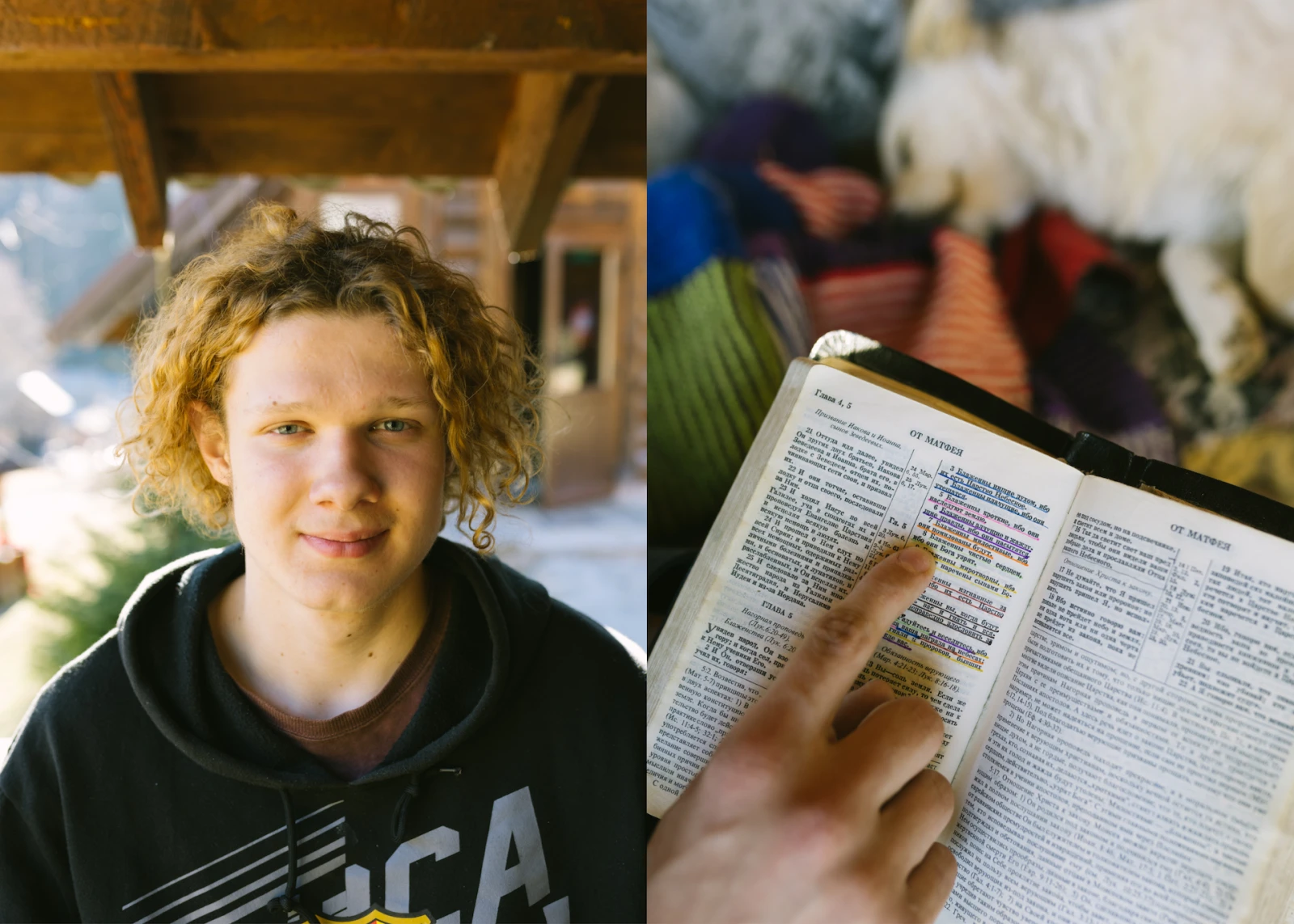 David, de Tcherkassy, a apporté sa Bible et une photo de son chien. Sourd depuis sa naissance, le jeune homme n’a pas entendu les bombes quand elles sont tombées : « Il faisait noir quand nous nous cachions, donc j’étais encore plus désorienté. C’est quand j’entrevoyais la peur sur le visage de mes proches que je pouvais comprendre que des bombes tombaient. »