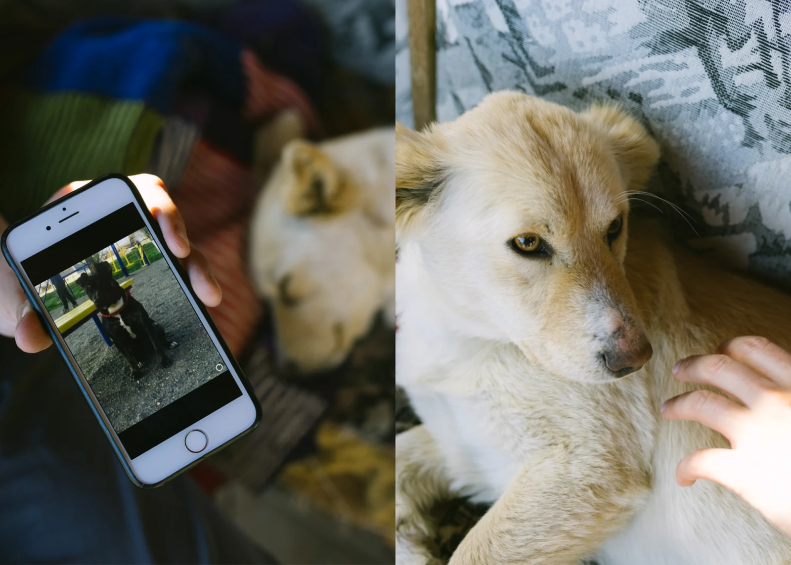 La voix pleine de regret, Dyana me confie avoir supprimé les photos de ses animaux juste avant la guerre pour faire de la place dans son téléphone. Elle passe beaucoup de temps avec les animaux des autres réfugié.e.s.
