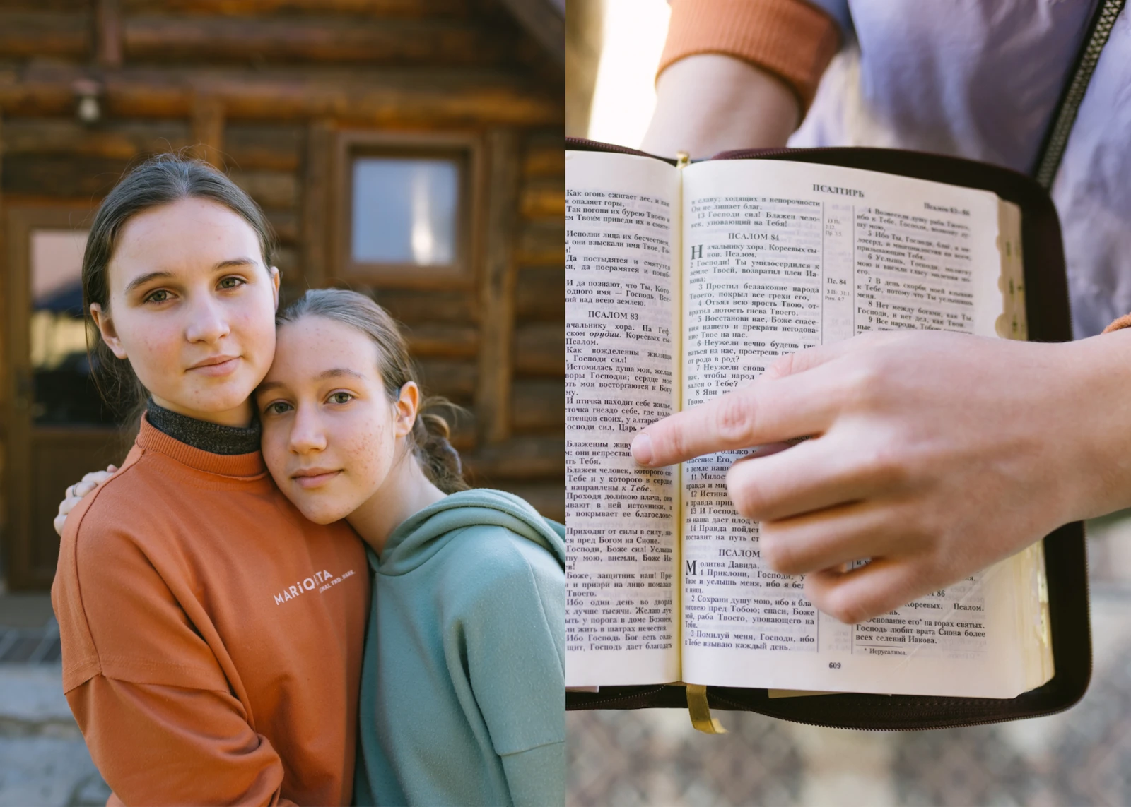 Cousines, Diana, 17 ans, et Veronika, 12 ans, ont fait la route avec les parents de l’aînée depuis Soumy, complètement à l’opposé du pays. Diana lit chaque jour des passages de sa Bible : « Nous faisons confiance à notre Seigneur. Nous n’avons que l’espoir, l’amour et la foi. »