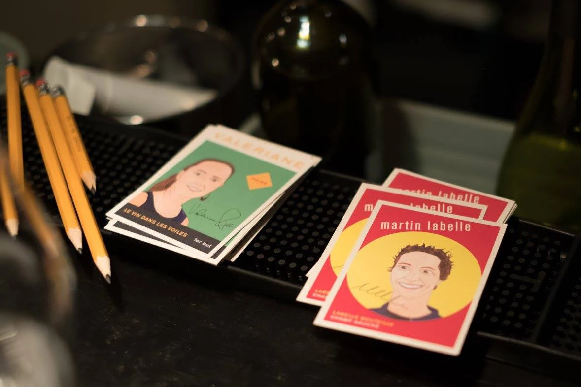 J’ai été très surprise! Ça s’est répandu plus vite que je ne l’espérais. Mais en même temps, ces gens-là sont super attachants et ils côtoient tellement de sommeliers et de restaurateurs, c’est normal que la publicité se soit faite rapidement. En plus, on leur fabrique des cartes de joueurs (style baseball) qu’ils peuvent remettre aux gens. C’est un bel outil promotionnel!