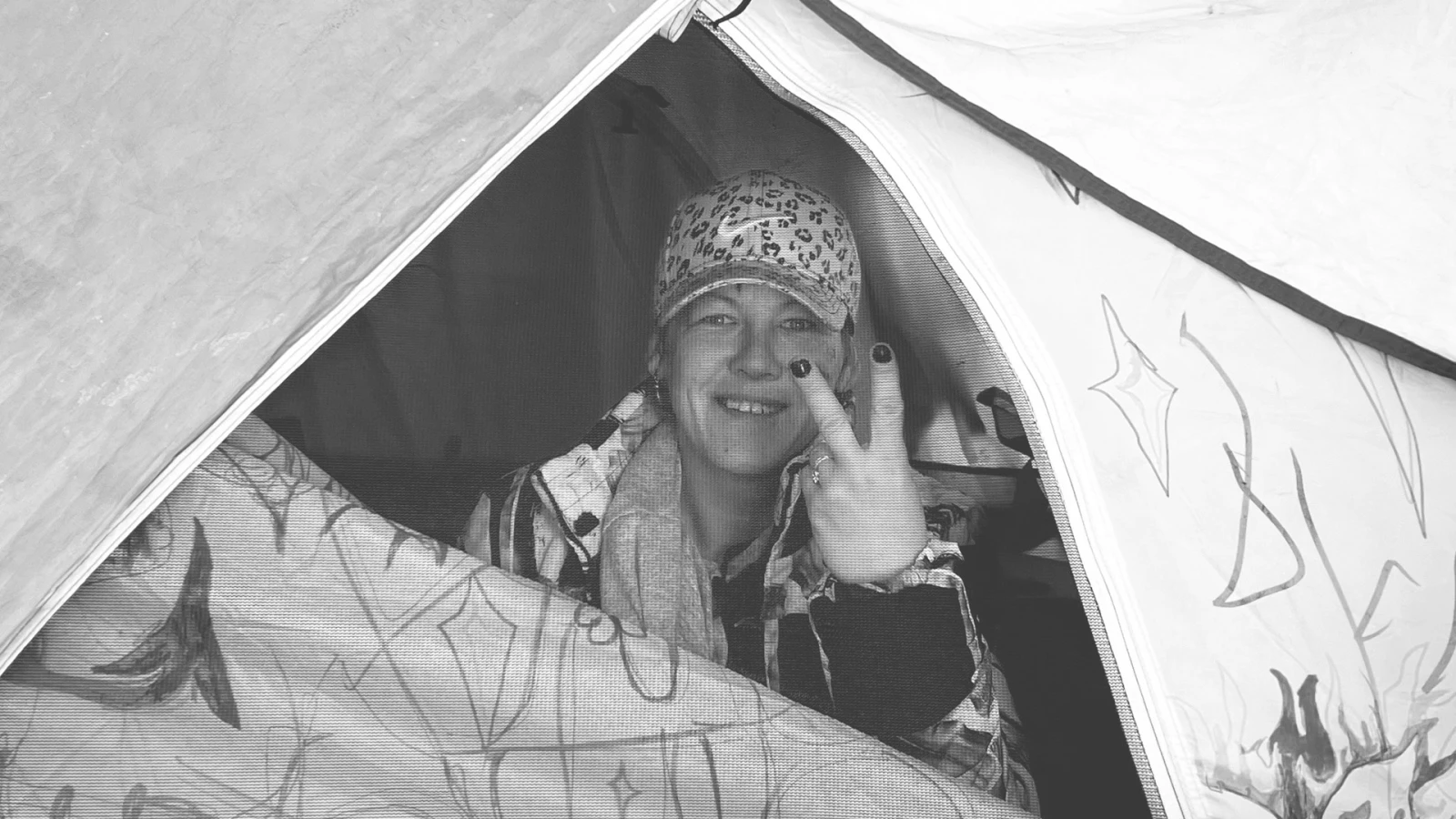 Troisième campement. Parmi les abris désertés, une tente attire l’œil avec ses dessins fluo. À l’intérieur se trouve Stéphanie. Devant sa maison de fortune, bâtie avec des toiles et de la corde, un bac contenant des chauffe-mains est mis à la disposition des visiteurs. « Ça, c’est aussi pour ceux qui en ont besoin », lance-t-elle en souriant à travers son moustiquaire.