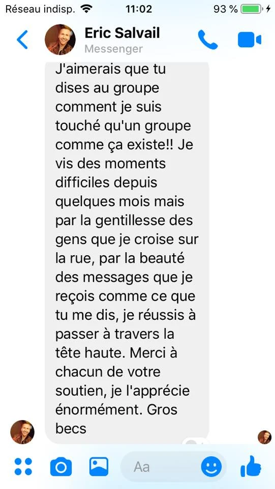 Même si rien ne va plus pour l’ancien animateur vedette, certains de ses fans se mobilisent pour soutenir leur idole, notamment dans le «Groupe de support pour Éric Salvail». Un groupe Facebook privé comportant 6000 membres et des poussières dans lequel quelques employés d’URBANIA (dont moi) ont réussi à se faufiler.