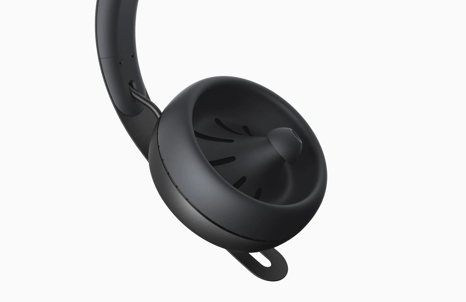 Comme vous pouvez le constater sur la photo, le casque inclut à l’intérieur de la coquille qui va sur l’oreille, un ti-bouton qui, lui, va directement dans votre oreille. Au-delà de son design qui donne apparemment l’expérience d’écoute ultime puisqu’il combine la basse puissante du over-ear et la clarté de son du in-ear, semblerait qu’en plus, les écouteurs s’adaptent à vos oreilles.