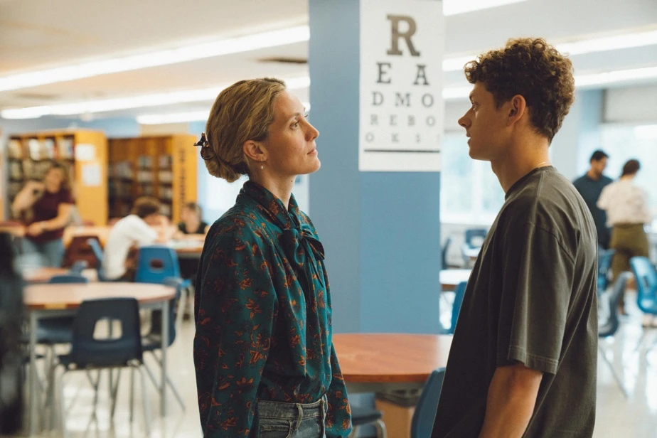J’ai rapidement changé mon fusil d’épaule. Là où la série réussit son tour de force selon moi, c’est qu’elle condamne d’emblée cette relation amoureuse illégale, sans aucune ambiguïté. Dès les premières images, on assiste à l’arrestation de l’enseignante ainsi que l’interrogatoire auquel fait face son jeune étudiant. Inspirée du cas réel de Mary Kay Letourneau, une professeure de mathématiques américaine emprisonnée de 1997 à 2004 pour avoir eu des relations sexuelles avec son élève de 12 ans, la série présente les faits de manière rétrospective.