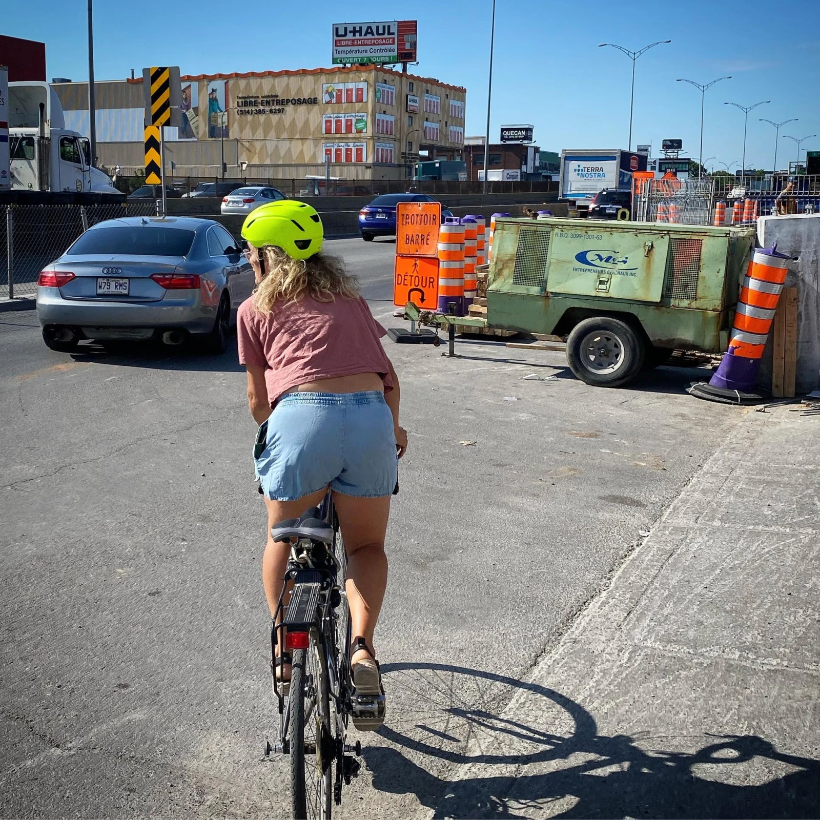 On gare nos vélos devant le stationnement, où se trouve un véhicule de la chaîne info de Noovo. Dommage, moi qui croyait être le seul à avoir eu cette idée de génie mais bon, les voies du seigneur sont impénétrables.