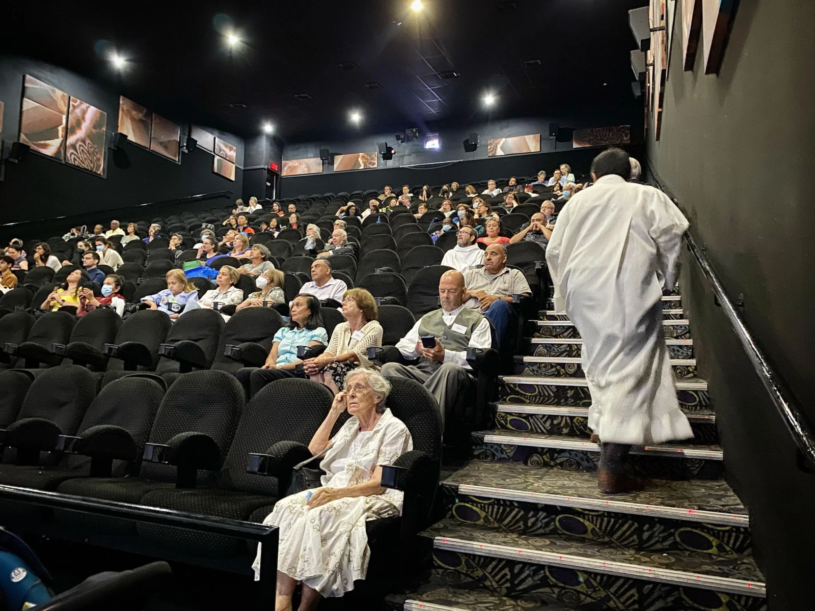 Près de l’entrée, deux femmes dans la jeune vingtaine se signent de la croix en entrant dans la salle. Lors d’un évangile, les cinéphiles se lèvent d’un bond pour réciter d’une même voix les paroles d’une genre de chanson à répondre.