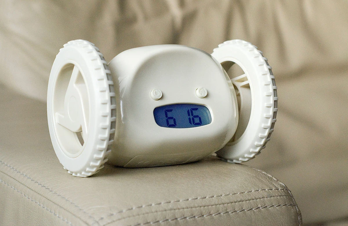 Plusieurs réveils-matins viennent avec des contraintes. C’est le cas de Clocky. Avec ce dernier, vous n’aurez pas le choix de vous lever au son de l’alarme… car celui-ci prendra la fuite!