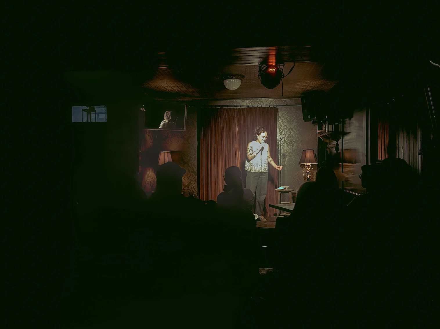 Un courriel de dernière minute m’informe que la soirée prévue au Jockey est annulée, sans plus d’explications. Pas le temps de niaiser : je bifurque vers le Siboire, sur la Main. C’est en bookant que je découvre que la populaire brasserie tient elle aussi sa propre soirée d’humour. Comme tant d’autres, finalement. À croire qu’à Montréal, toute scène devient un terrain de stand-up dès que l’éclairage s’y prête.