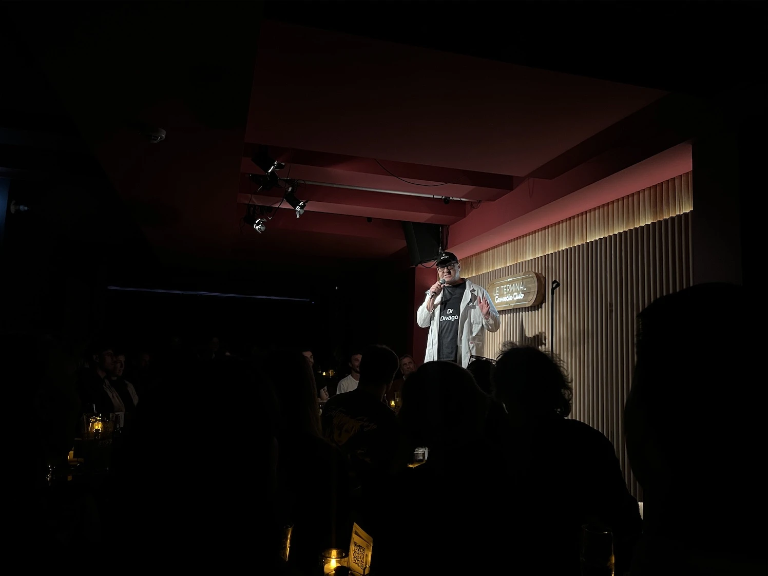 Le malaise plane, et parfois, nul abri ne semble possible. Je regarde au sol en espérant que ça passe. L’animateur, fort sympathique, rame à contre-courant pour maintenir la tension comique, mais les rires, eux, se font encore plus timides que les autres soirées, comme quoi l’aura des lieux n’assure pas les claps.