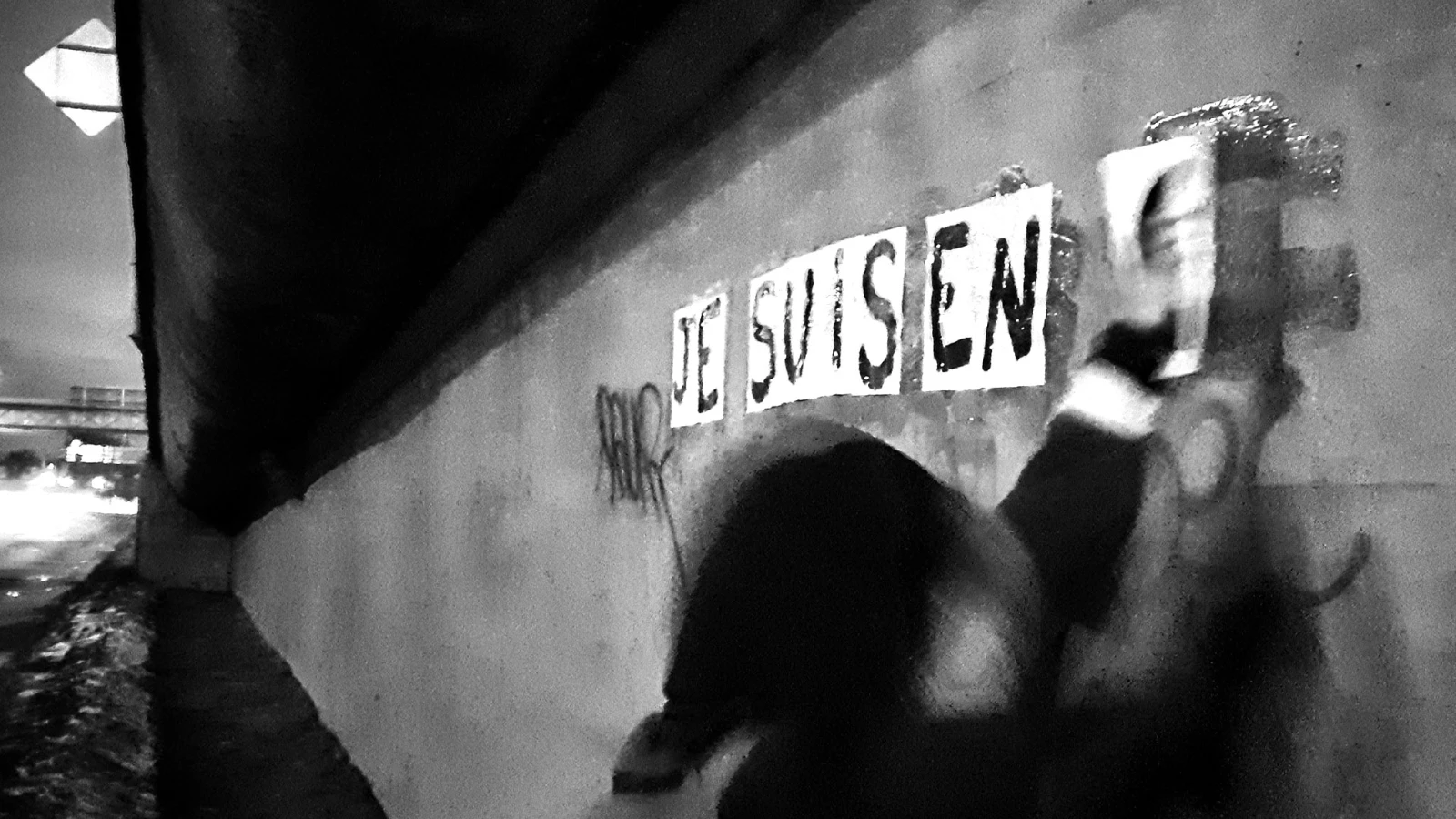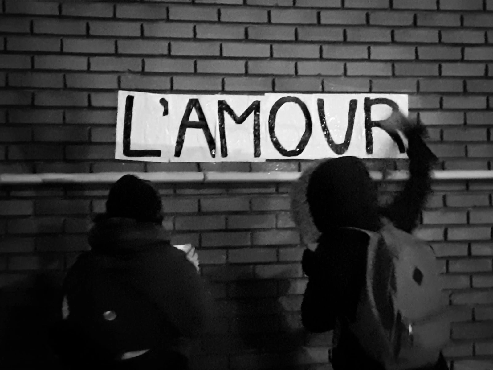 Ce n’est pas la température en pleine dégringolade, mais l’approche du couvre-feu qui décide les colleureuses à s’arrêter là pour ce soir. Sur le chemin vers le métro, Xena pointe des formes blanches au loin. « C’est un autre collage ça », m’indique-t-ille avec gaieté.