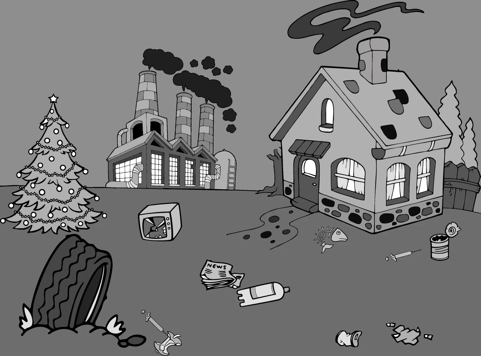 Pour oublier cet été indien d’une longueur de plus en plus inquiétante, URBANIA t’offre cette image à colorier. On te suggère d’utiliser du Liquid Paper pour faire office de neige. Profites-en pour cacher les différents détritus.