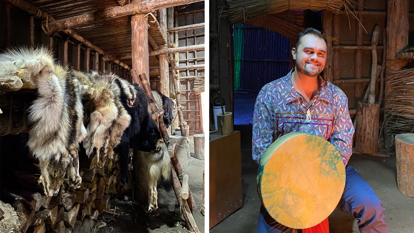 Avant de nous offrir un chant au son de son tambour, Dominic nous parle avec enthousiasme des jeunes autochtones qui réapprennent leur langue, qui se réapproprient des techniques artisanales comme le perlage de wampum.