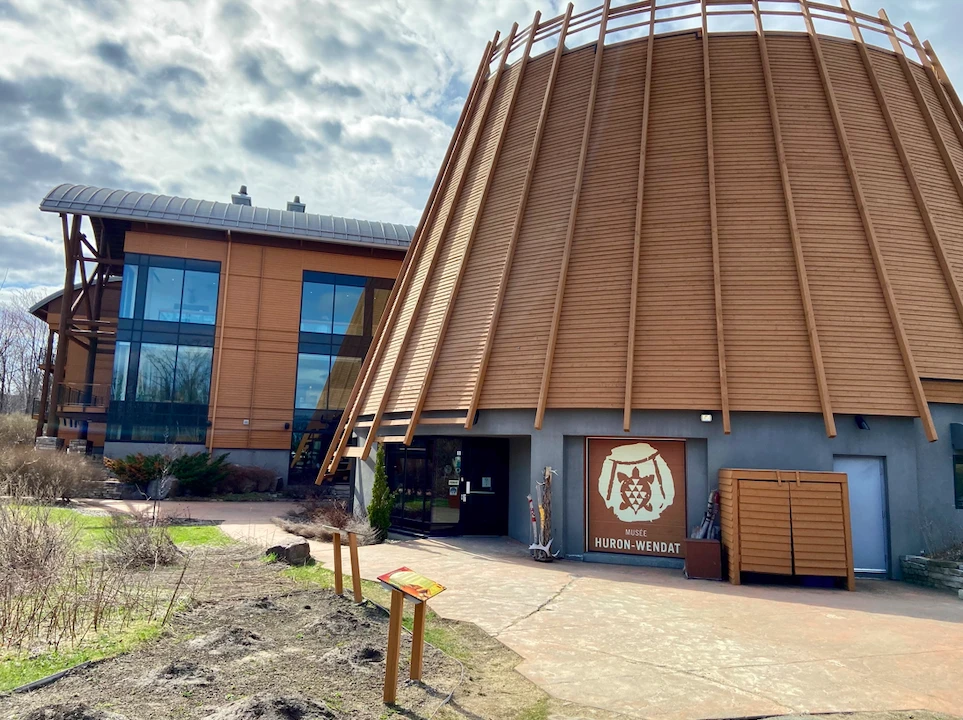 L’Hôtel-Musée Premières Nations, situé à Wendake en bordure de la rivière Akiawenrahk (Saint-Charles), à quelques kilomètres de la ville de Québec, se déploie au bout de la place de la Rencontre.