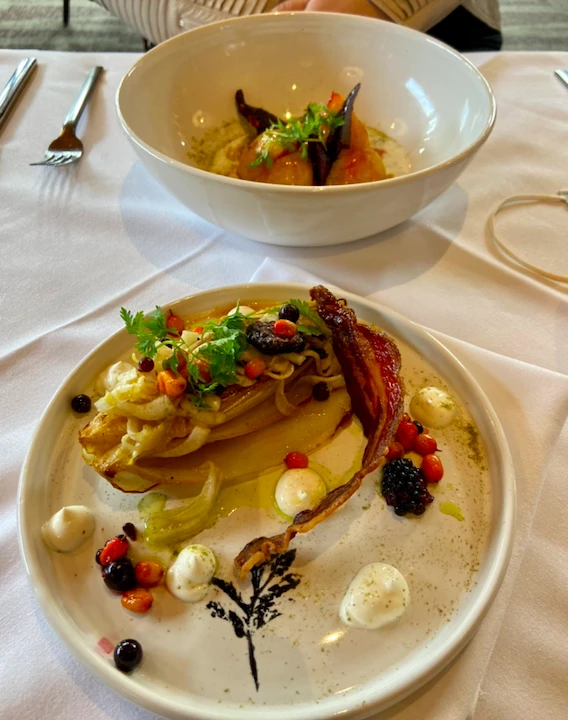 Épines de sapin pochées dans le sirop, loup-marin, pain bannique maison, sel de cèdre : la mise en valeur des produits du terroir m’impressionne à chaque bouchée.