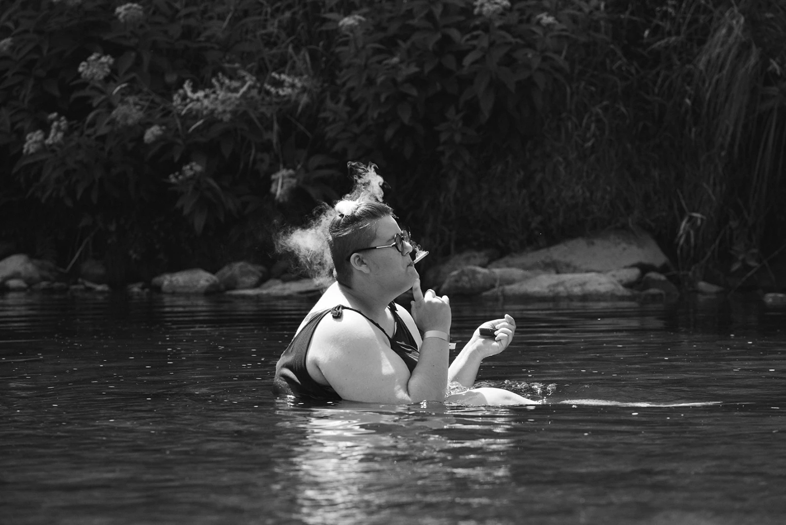 La photographie l’a pris un peu par surprise, à un moment où il éprouvait peu de plaisir, pour le dire en euphémisme, pour son travail. D’un périple à New York, avec l’appareil photo de sa sœur, il a tiré quelques clichés qui l’ont étonné parce qu’ils n’étaient pas mauvais, parce qu’ils contenaient « quelque chose ». « Ce n’était pas nécessairement des bonnes photos, mais c’était des photos. », dit-il, avant de se lancer dans une définition de ce que c’est, une bonne photo, soit une image qui a un propos, que l’on comprend, qui impressionne, mais je sens, à l’écouter, que tout, pour lui, se joue dans le vu, que ça se traduit mal en mots. Bref. Il s’est alors acheté un appareil « correct » et s’est mis à photographier essentiellement ses ami. e. s, les gens avec qui il se tenait dont plusieurs œuvraient dans le milieu de la musique.