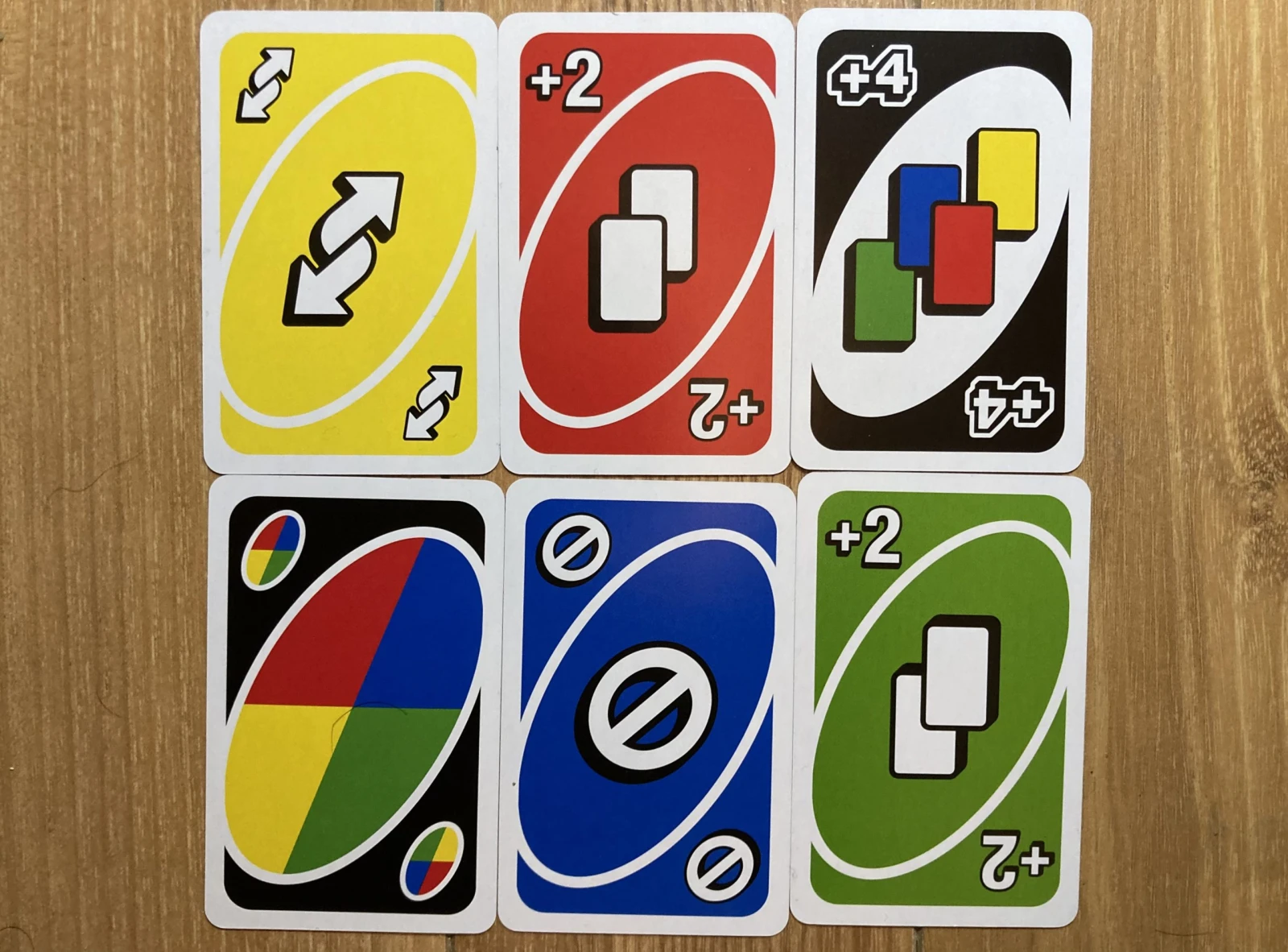 En excluant les 3 cartes personnalisables, un paquet de Uno acheté de nos jours est constitué de 109 cartes. Ce nombre impair est expliqué par la présence d’une nouvelle carte. La carte Mélanger les mains.