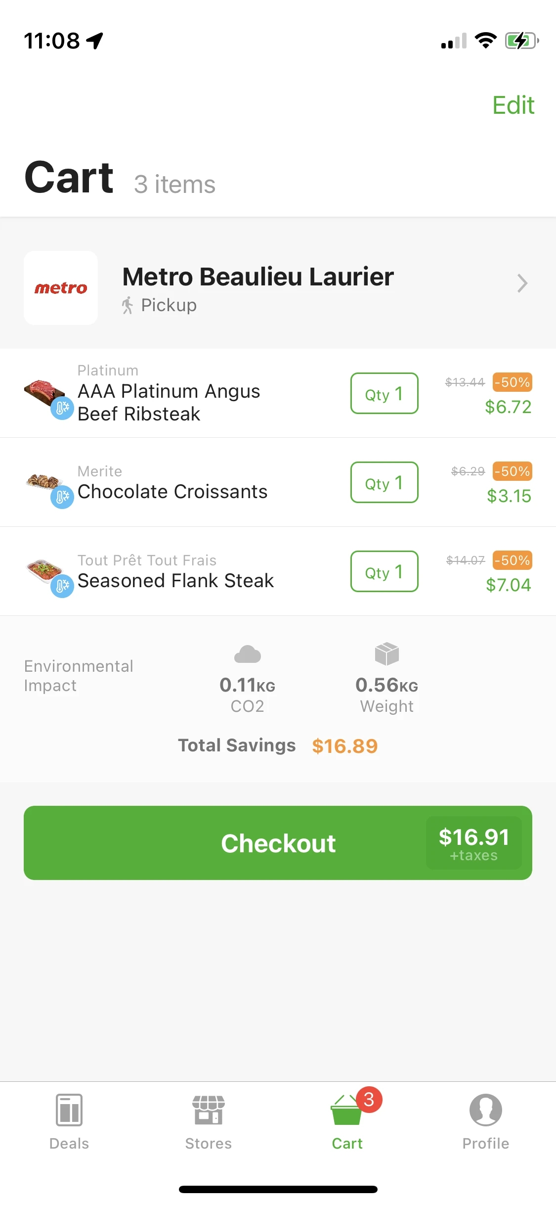 Il y a aussi FlashFood qui contient un peu moins de choix. Je l’ai gardé sur mon téléphone, mais les prochaines captures d’écran viennent de FoodHero parce que la plateforme m’offrait une épicerie plus proche de chez moi (et que je suis paresseux).