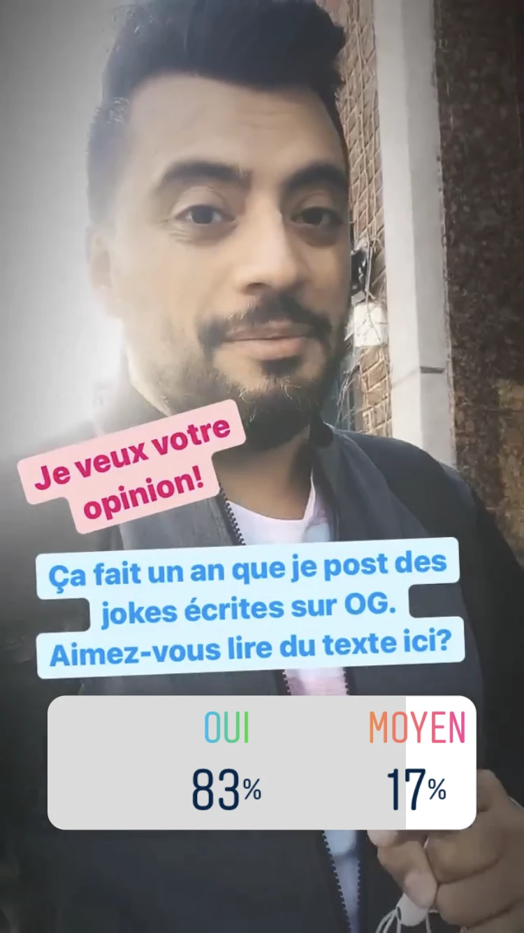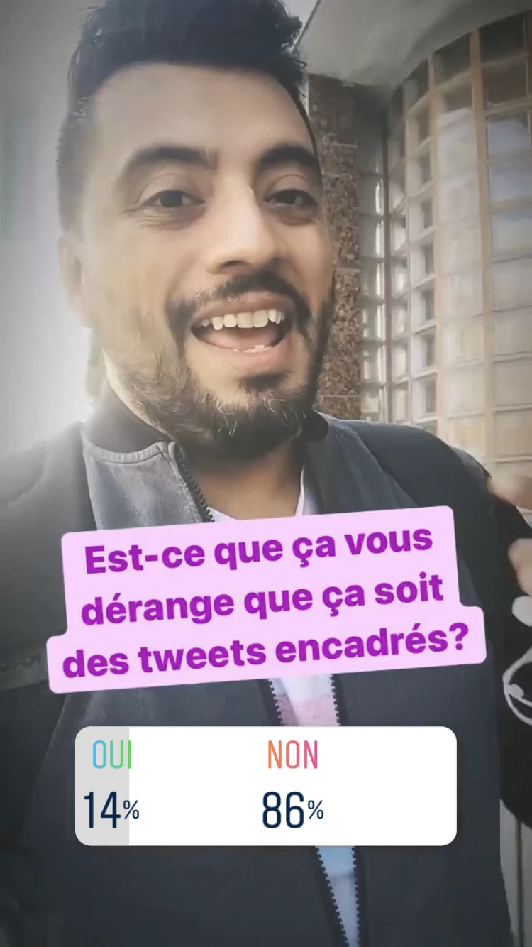 J’ai mal formulé cette question. Mes deux réponses ont le sens inverse. C’est-à-dire que c’est le «non» qui a une connotation «positive» et le «oui» est négatif. Ça a l’air niaiseux, mais les gens font plein d’autres affaires en regardant des stories. Plusieurs abonnés m’ont écrit parce qu’ils ont répondu oui alors qu’ils voulaient dire que ça ne les dérangeait pas. Bon, donc, à ce sujet, je vais continuer!