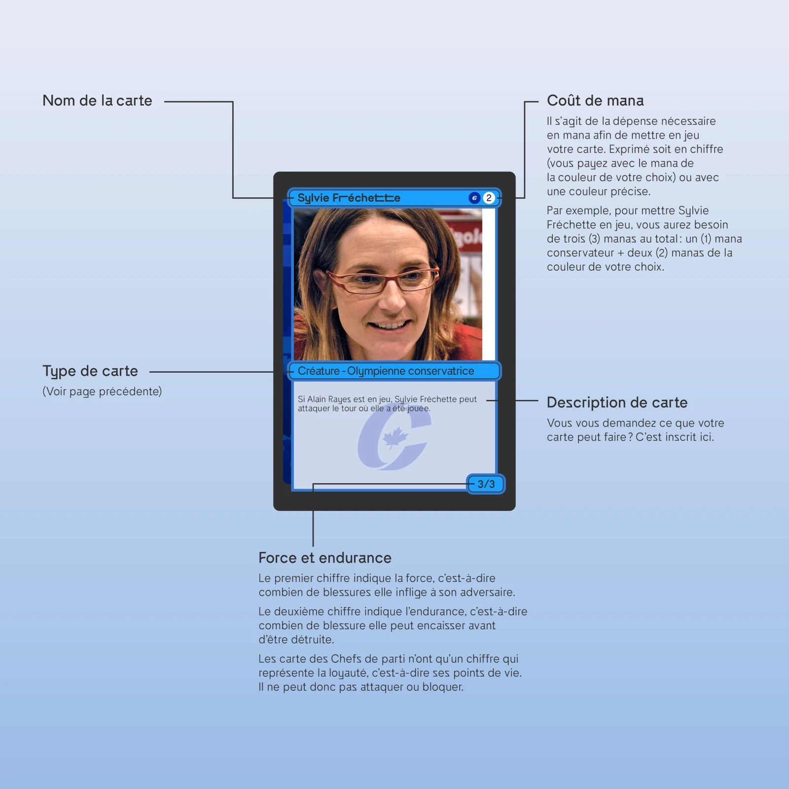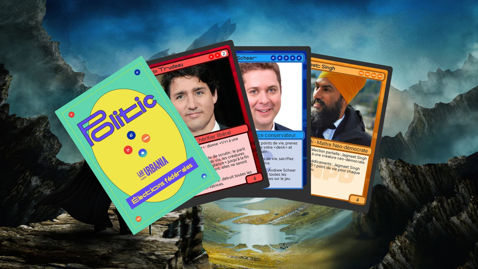 Bienvenue dans l’univers de Politic, un jeu inspiré de Magic : The Gathering et conçu par le Lab URBANIA UQAM pour accompagner la campagne électorale. Vous trouverez, dans les lignes qui suivent, tout ce qu’il faut pour entrer dans l’arène politique en ayant plus de fun que les candidat.e.s de votre circonscription. On vous a aussi fait une version PDF à télécharger ici si vous préférez. Vous devriez, on a fait un beau design.