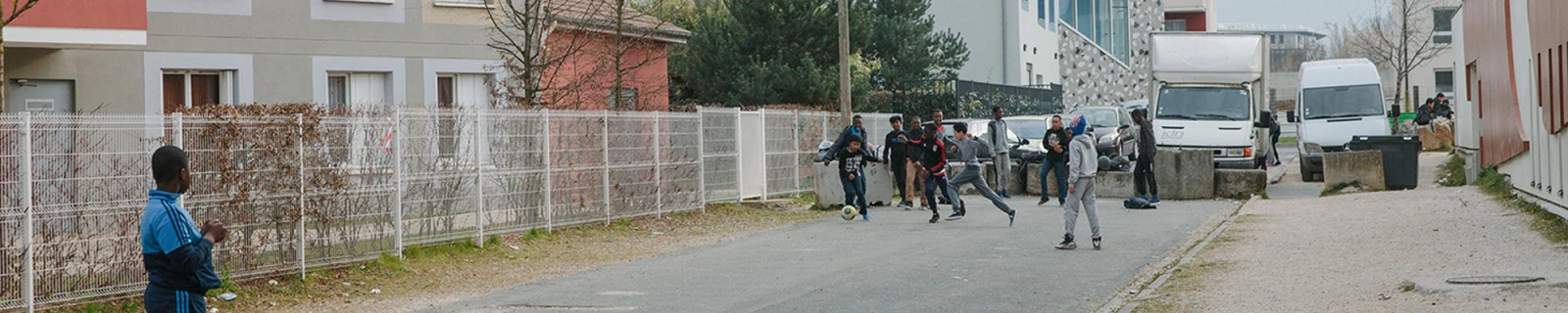 Grigny, collège Pablo Neruda – C’est l’heure de la sortie des classes. Des cartables posés sur un coin de trottoir font office de but dans une partie de foot improvisée. Deux Grignois, la trentaine, se croisent devant le préau de l’établissement. Check de l’épaule et discussion ciné :