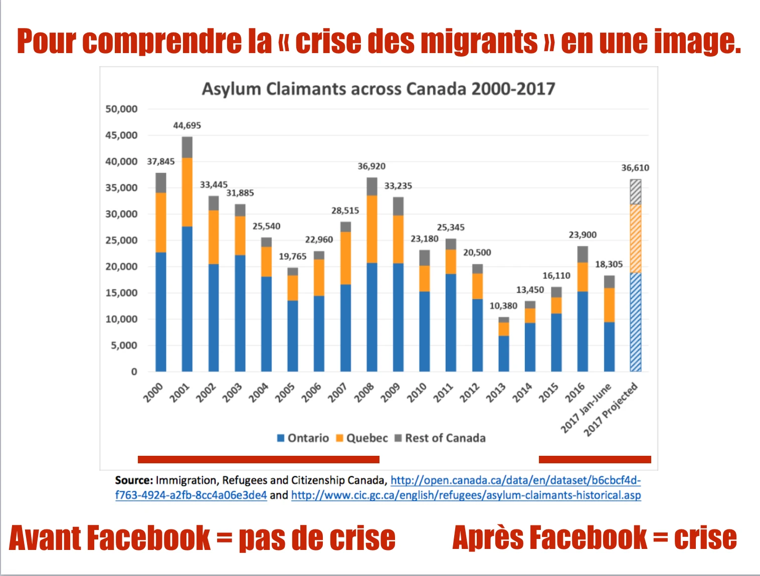 C’est peut-être la technique qui a l’air la plus simple, mais la désinformation joue un grand rôle dans la montée du racisme au Québec. Louis T l’explique d’ailleurs très bien dans cette capsule consacrée à l’immigration. L’importance d’avoir les vrais chiffres avec de vraies sources pour avoir un jugement éclairé se perd de plus en plus. C’est pour ça qu’aujourd’hui des gens se regroupent en meute pour lutter contre «la crise des migrants» alors que ben, y’a pas de crise de migrants.