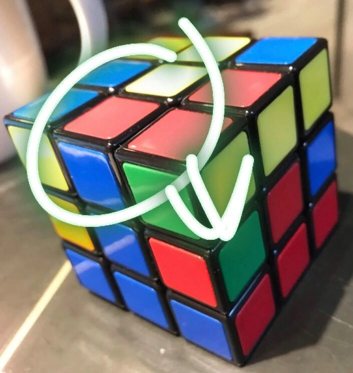 En tenant un cube devant vous, si vous voyez F, je veux que vous tourniez la surface faisant face à vous dans le sens des aiguilles d’une montre.