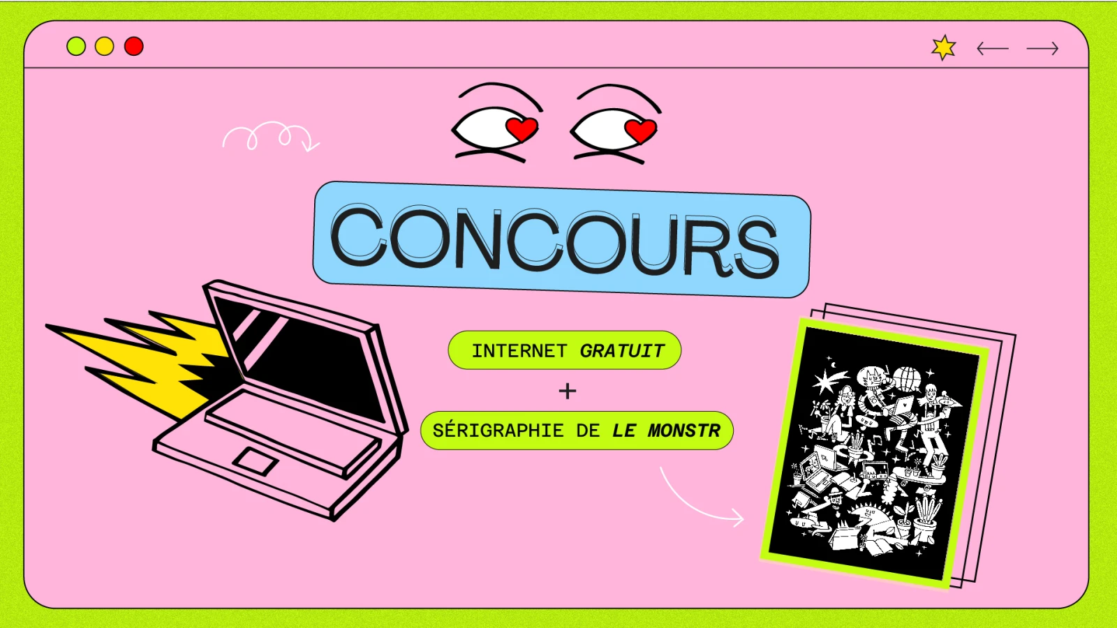 – Un forfait de six (6) mois d’internet à 400 Mbit/s (une valeur approximative de 504 $) et une sérigraphie originale de Le Monstr (une valeur approximative de 175 $).