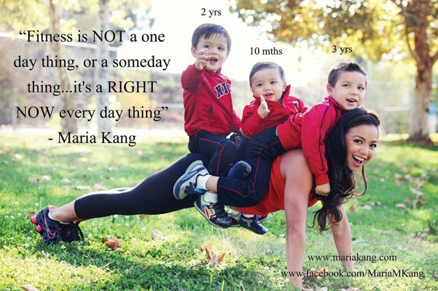 Des semaines auparavant, une dénommée Maria Kang (aussi sur la photo introduisant ce billet) dévoilait un cliché d’elle en tenue sportive, accompagnée de ses trois enfants et son six pack.