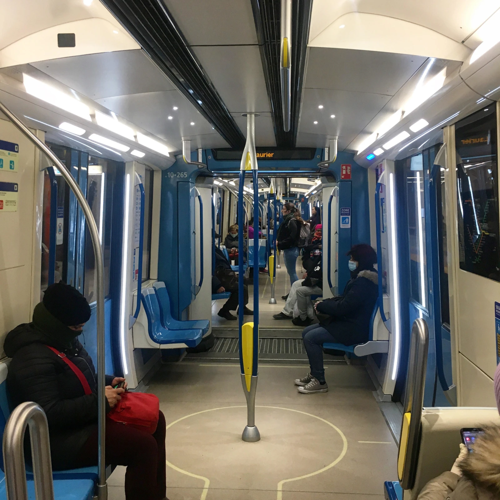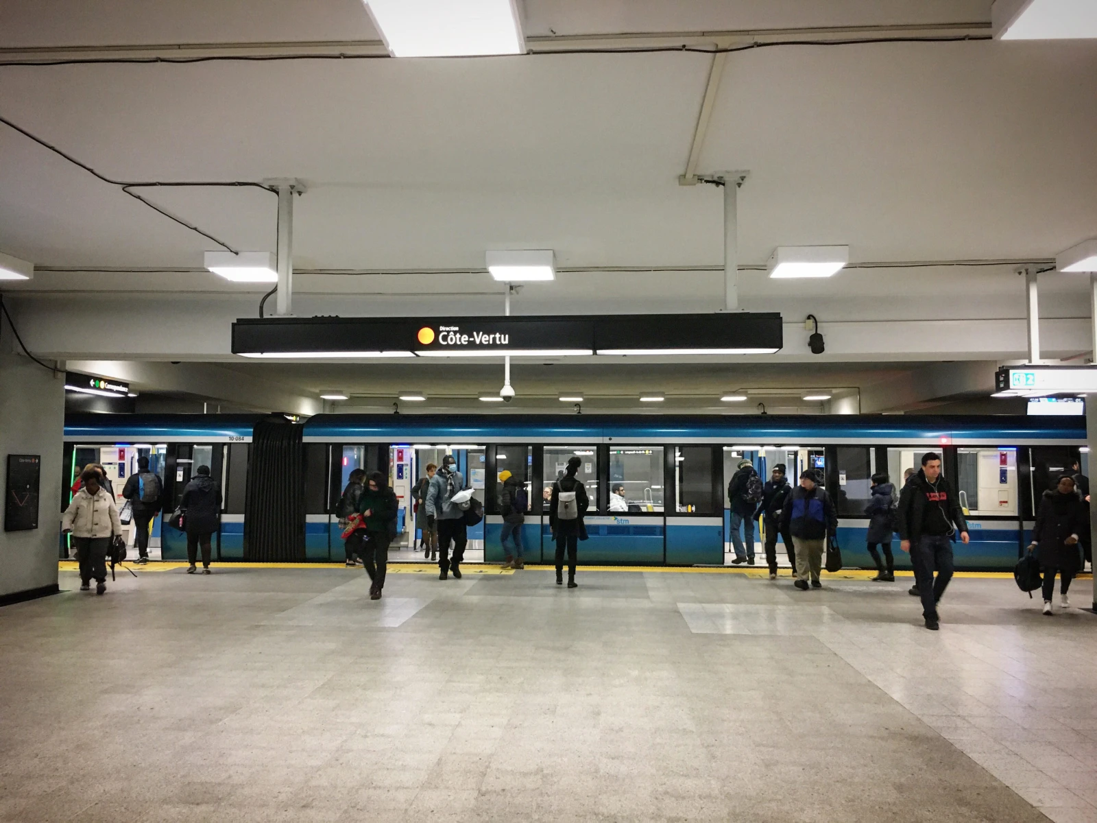 Premier constat: le métro en direction de Côte-Vertu est plutôt fréquenté dans les circonstances. C’est étrange de voir autant d’humains réunis à un seul endroit, une vision rare ces jours-ci. Environ le tiers des passagers est masqué.