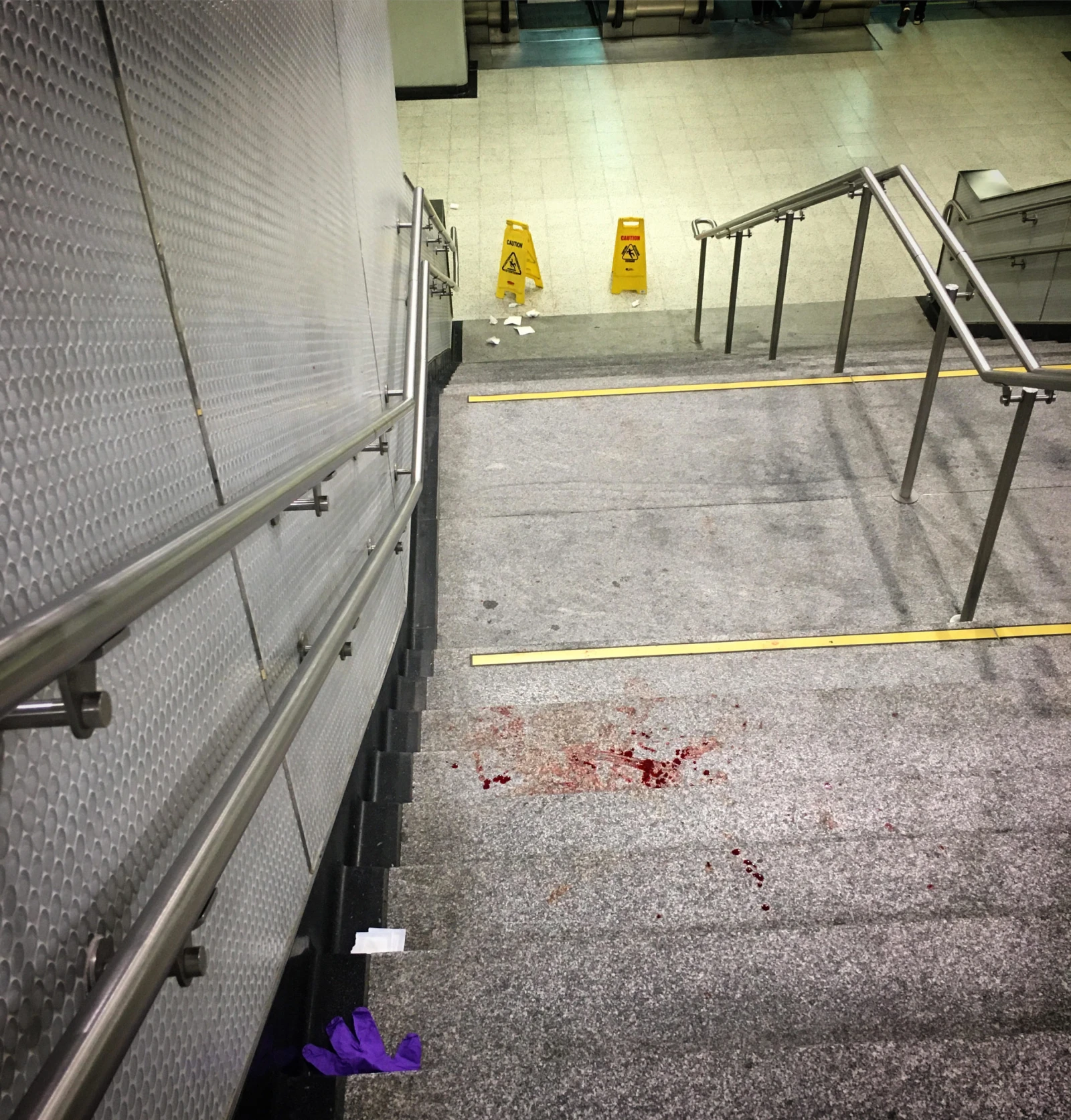 Il faut dire que la station est très fréquentée par les populations plus vulnérables auprès de qui les messages de la santé publique peuvent avoir de la difficulté à se frayer un chemin . La suite illustrerait la situation particulière dans laquelle est plongée la station, puisqu’en quelques minutes, une personne itinérante en crise crachait plusieurs fois par terre en vociférant et plusieurs policiers et agents du métro intervenaient auprès d’un jeune homme intoxiqué qui pissait le sang dans l’escalier après une chute.