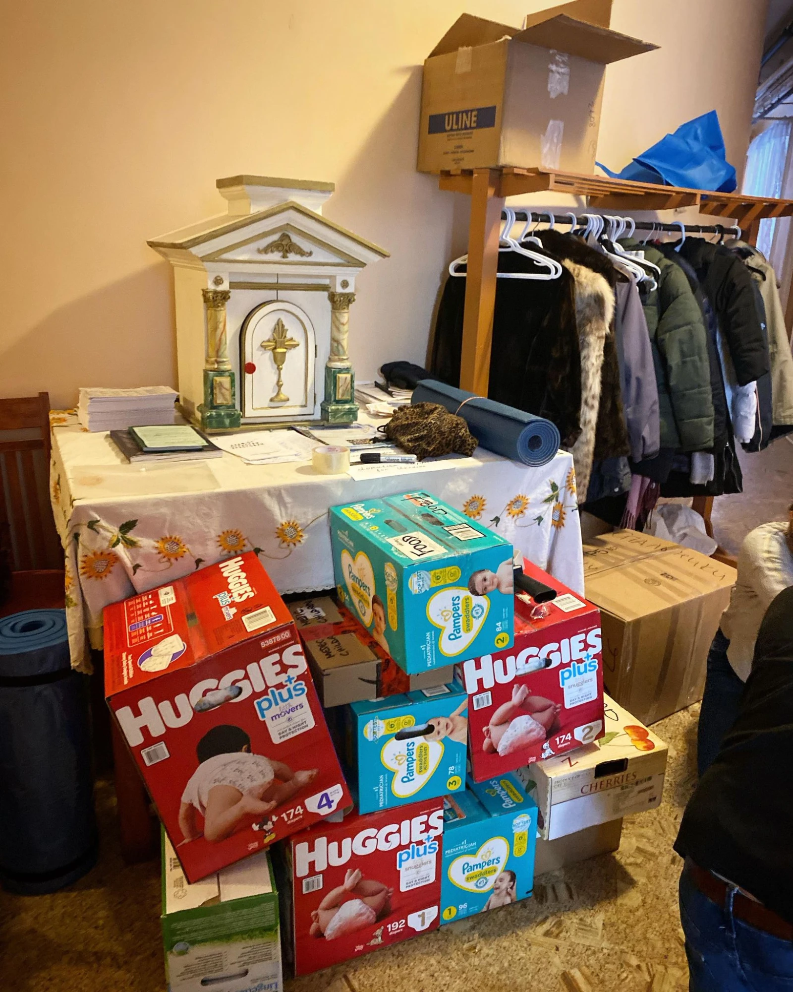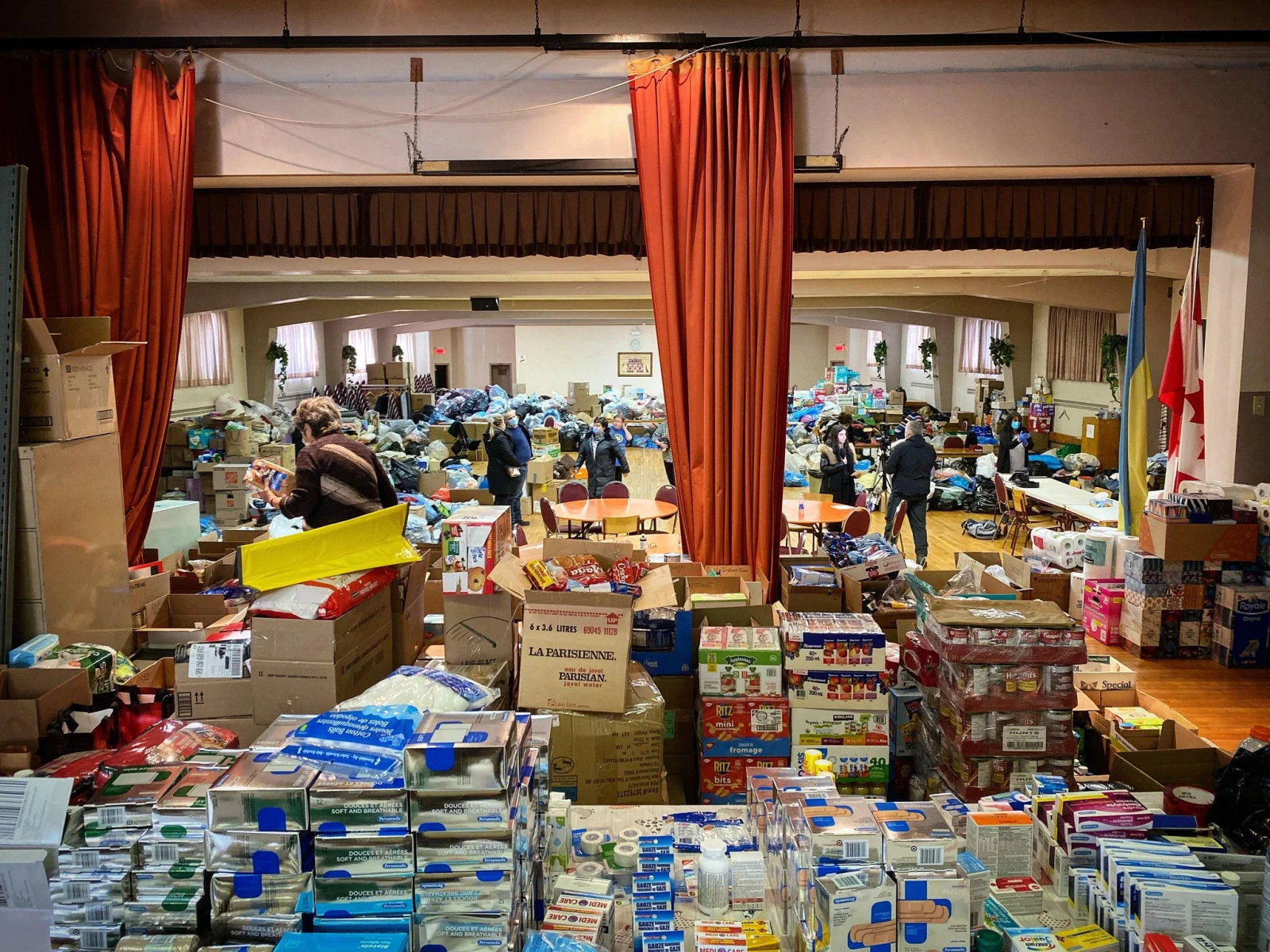 Une tournée aussi étourdissante qu’émouvante, tellement la population répond en grand nombre pour prêter main-forte aux Ukrainien.ne.s. Les gens défilent sans arrêt avec des boîtes de vêtements, denrées non périssables, jouets, médicaments en vente libre, produits hygiéniques et autres, en plus de se présenter sur place pour offrir leurs bras.