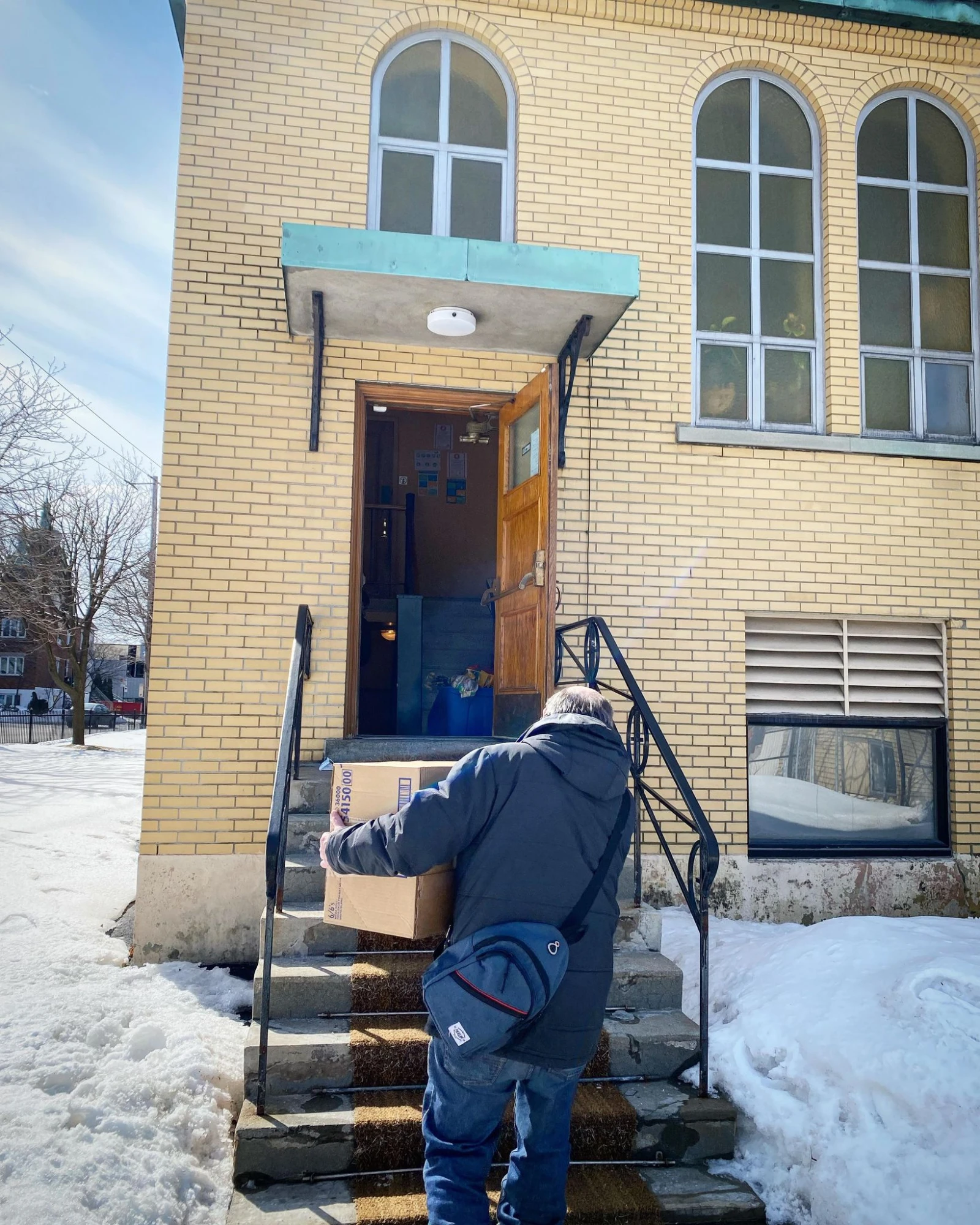 Dans le petit escalier derrière, les gens entrent et sortent sans arrêt avec des sacs et des boîtes. Les bénévoles sont incapables d’accueillir tout le monde tellement le flot de donateurs et donatrices est incessant. À mon passage, il y a même un bouchon de circulation sur la rue en bordure de l’église. « En m’en venant sur la Métropolitaine, j’avais presque les larmes aux yeux », confie Benoît Bourgeois, l’employé d’une boutique électronique venu livrer vingt grosses boîtes de vêtements pour femmes flambants neufs.
