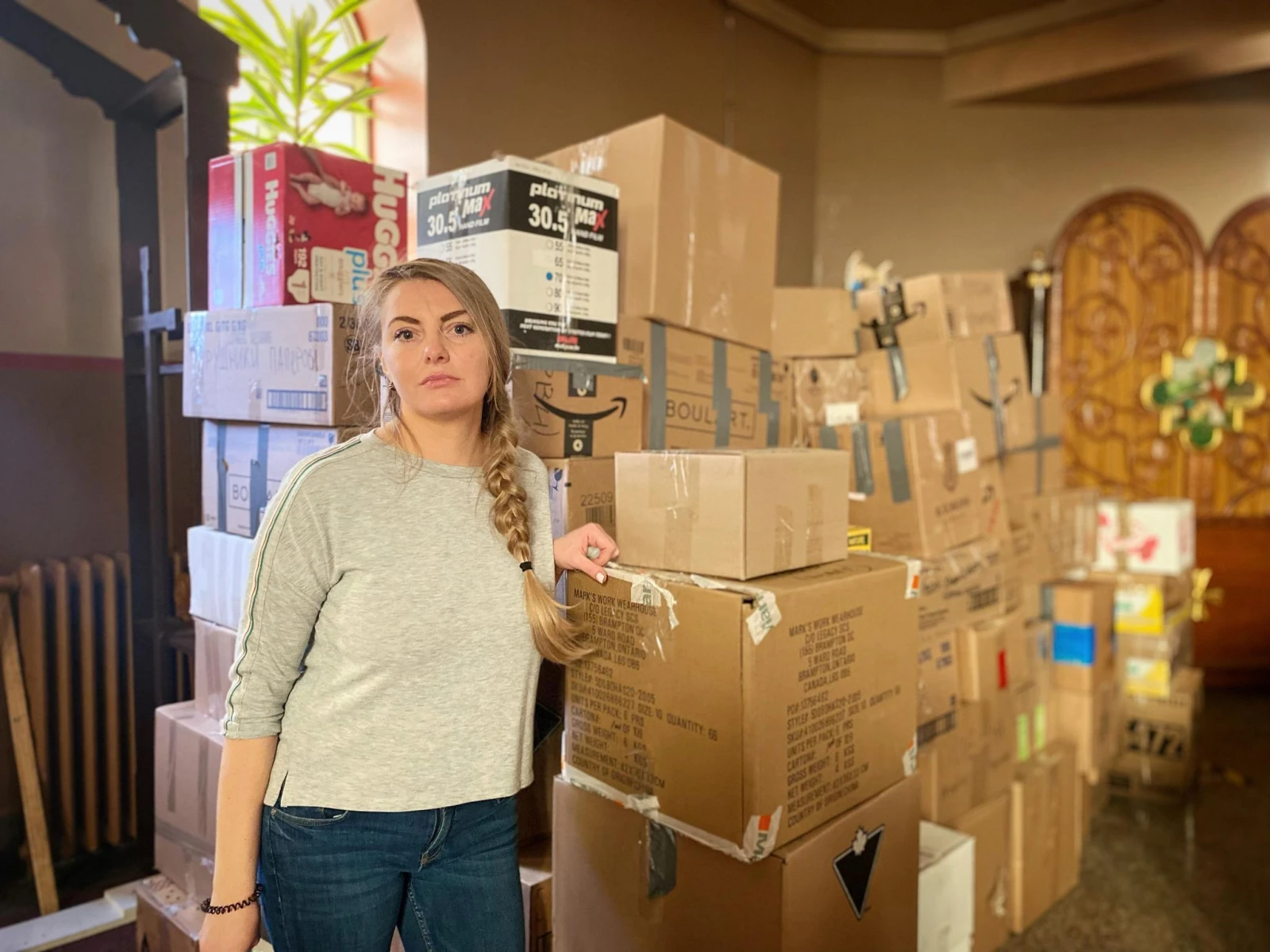 À l’intérieur, les bénévoles fourmillent. J’accroche la responsable Khrystyna Lastovetska, une jeune femme de Terrebonne dépêchée en renfort. Elle salue aussi la générosité des Québécois.es. « Nous sommes très reconnaissants. Ce que nous ressentons dans notre cœur nous aide à traverser ces moments difficiles », souligne Khrystyna devant les boîtes de dons triés au fond de l’église, prêtes à être envoyées.