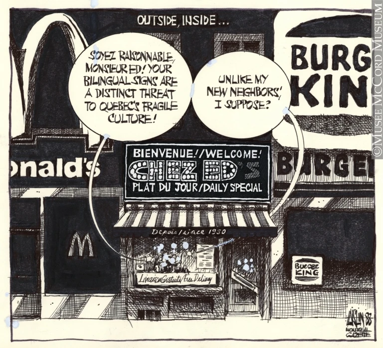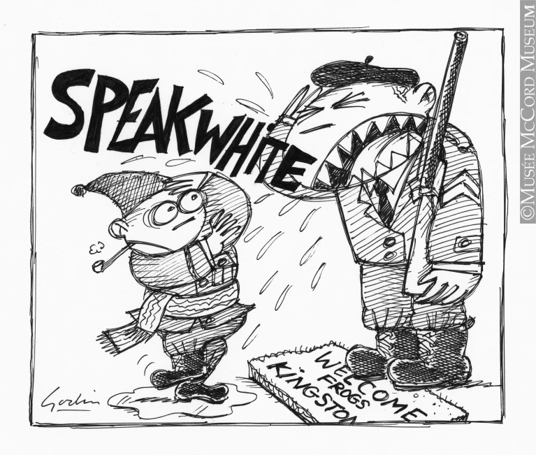 Chaque semaine, nous vous présentons une sélection thématique d’oeuvres faisant partie de la vaste collection du Musée McCord. Aujourd’hui: quelques caricatures illustrant 60 ans de mésentente franco-anglo dans la province.