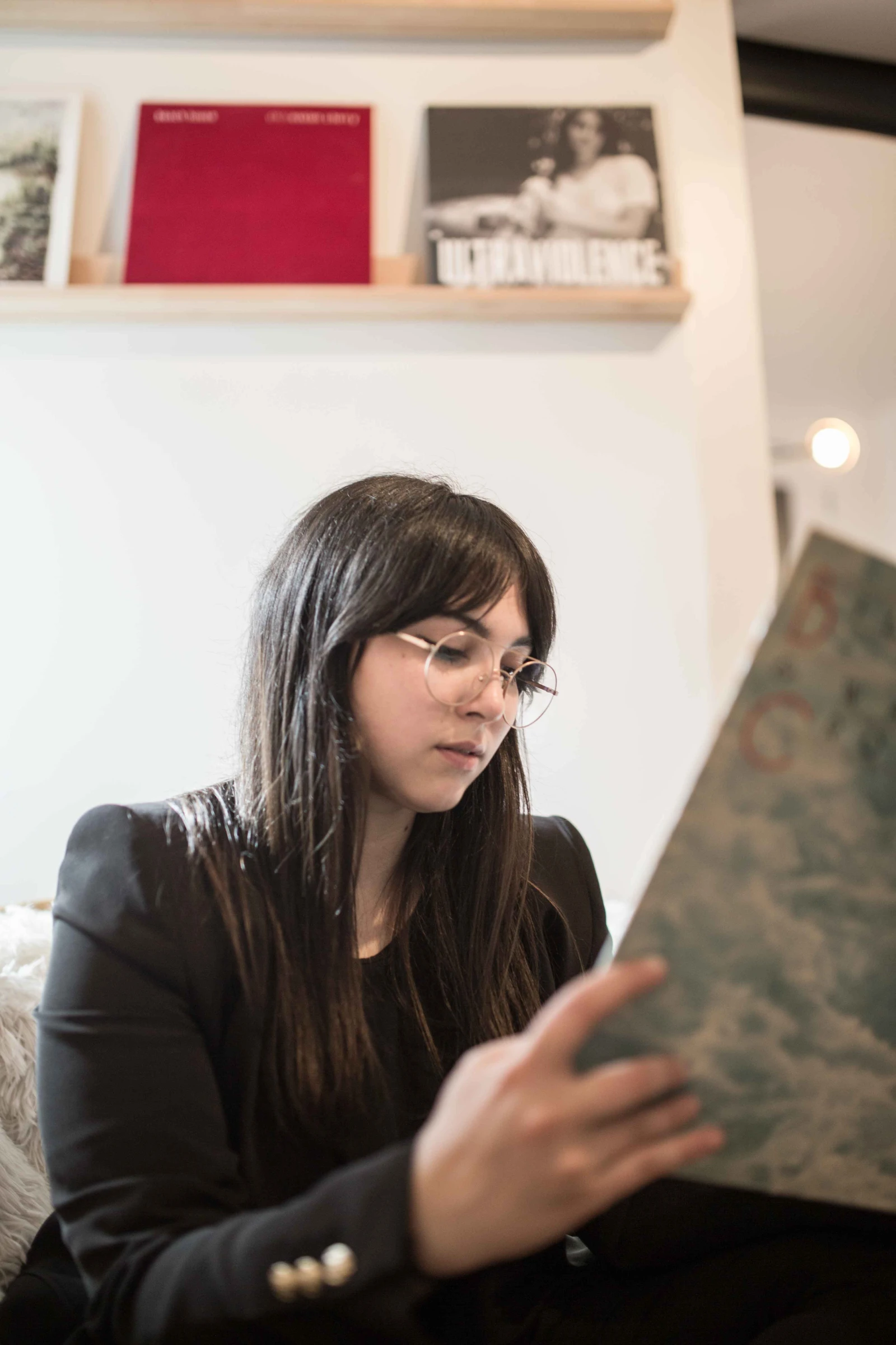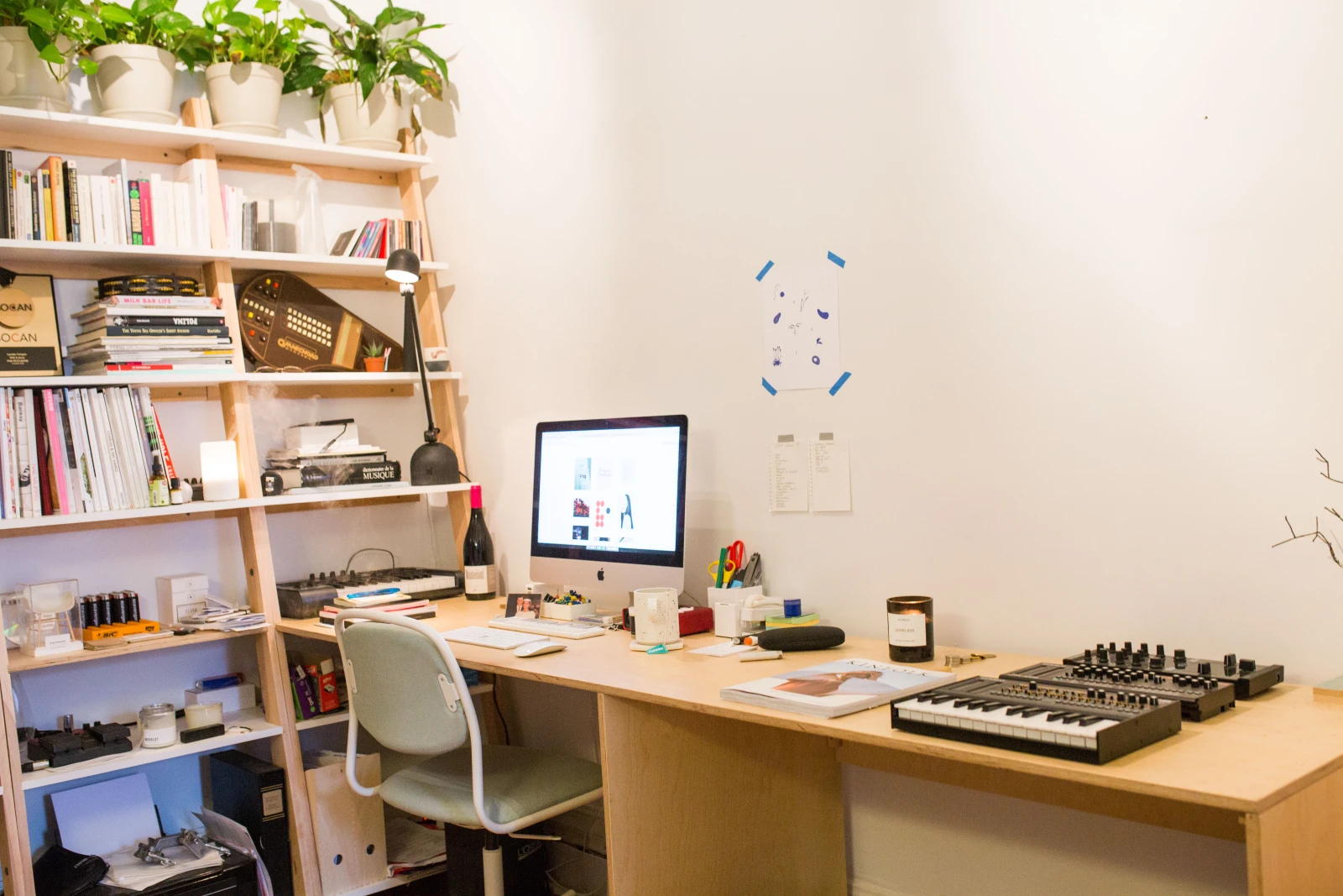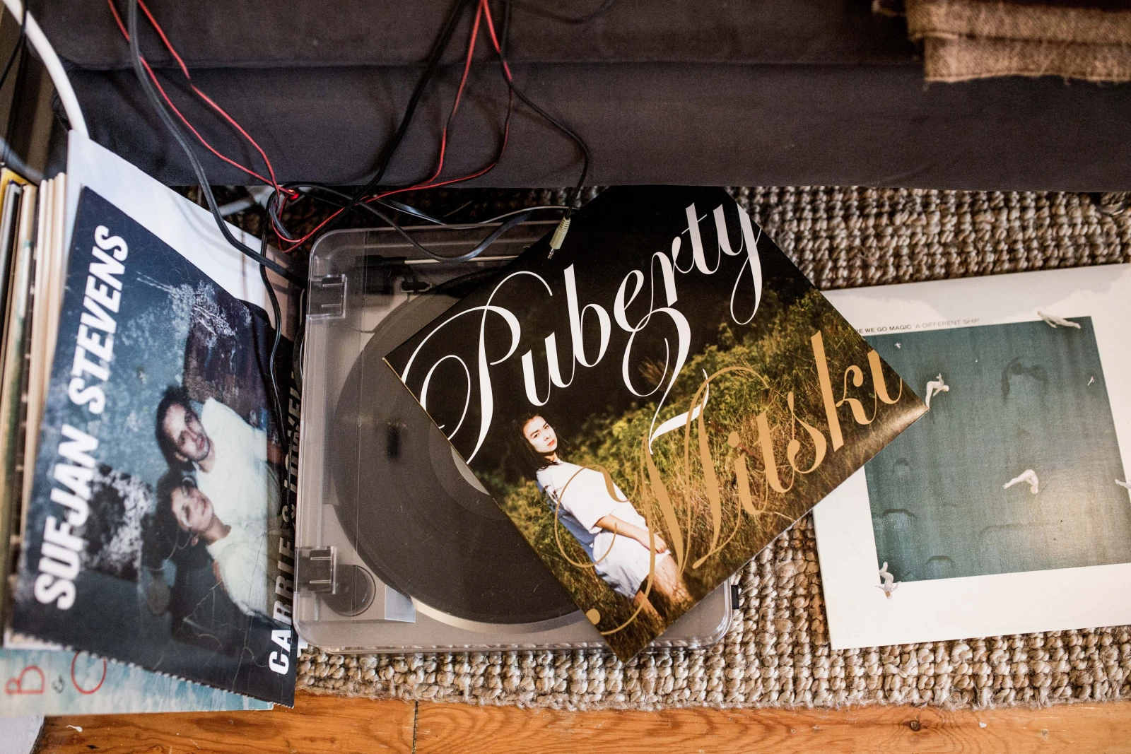 Je vois une couple de vinyles par terre là-bas, mais dans l’ensemble, je trouve que ton coin musique est plutôt épuré… Gardes-tu quelques objets symboliques, des billets de shows, par exemple?!