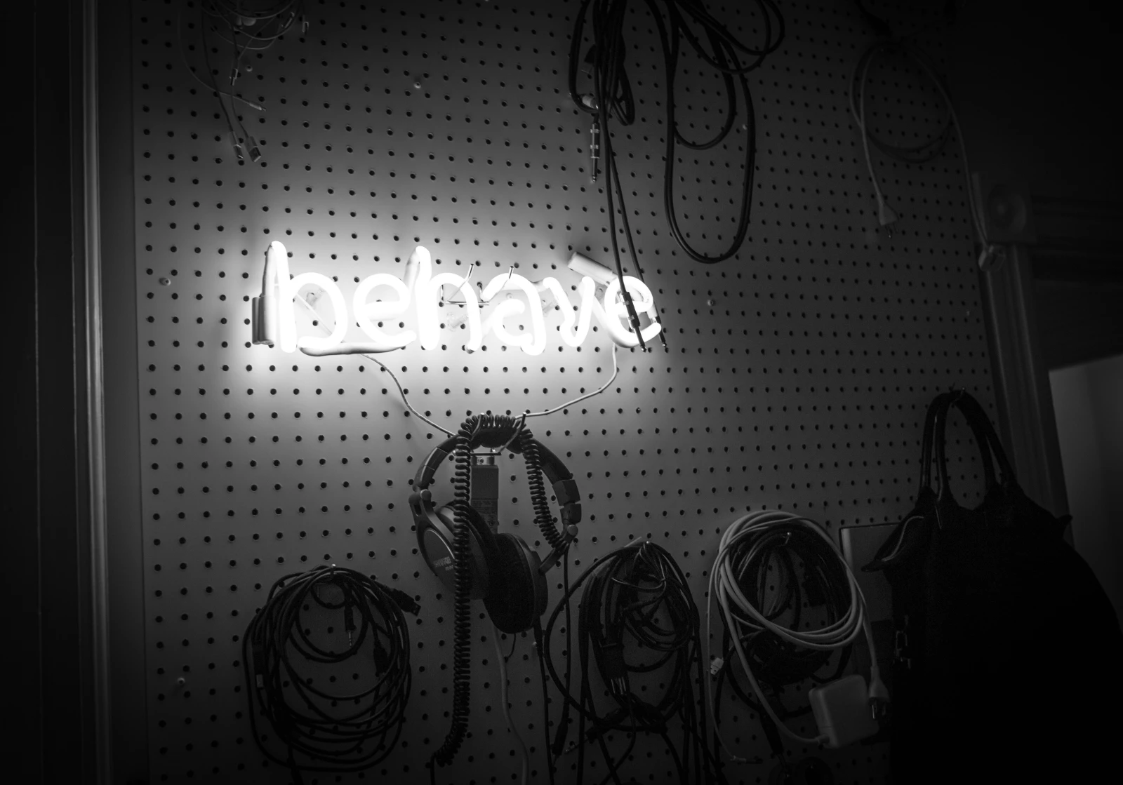 KROY a été la première à m’ouvrir les portes de son coin musique. Depuis ce temps, moi aussi je veux un mur à écouteurs et à fils avec un néon que je peux allumer quand je veux. La plus belle des veilleuses d’adulte, même si elle nous rappelle, jour et nuit, de bien nous comporter. Toi, qu’est-ce que tu ferais écrire sur ton néon ?