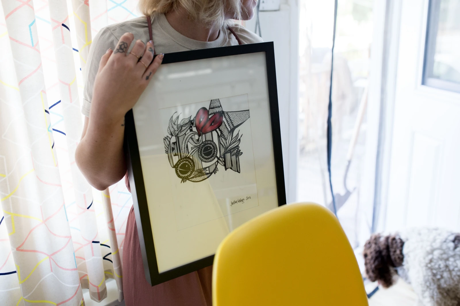 * Les deux tableaux qu’elle tient sont d’ailleurs des oeuvres de Justine Laberge de Alfa Rococo (la première) et de Pierre Lapointe (la deuxième). Tout ça donne envie de créer, n’est-ce pas?