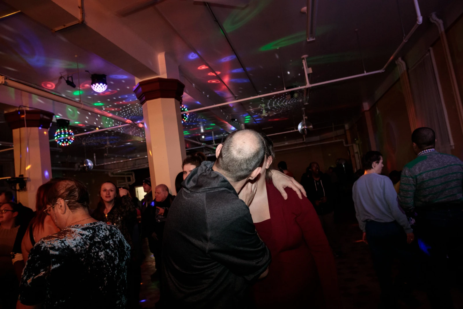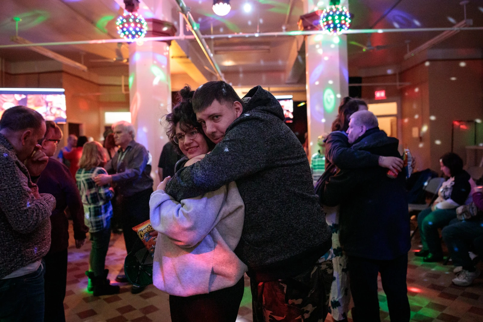 Les musiques s’enchaînent. Certains dansent, d’autres préfèrent rester assis ou se rendre dans la cantine où il y a plus de calme. Steven vient à la discothèque depuis 2007. C’est d’ailleurs ici qu’il a rencontré sa blonde, Annick.