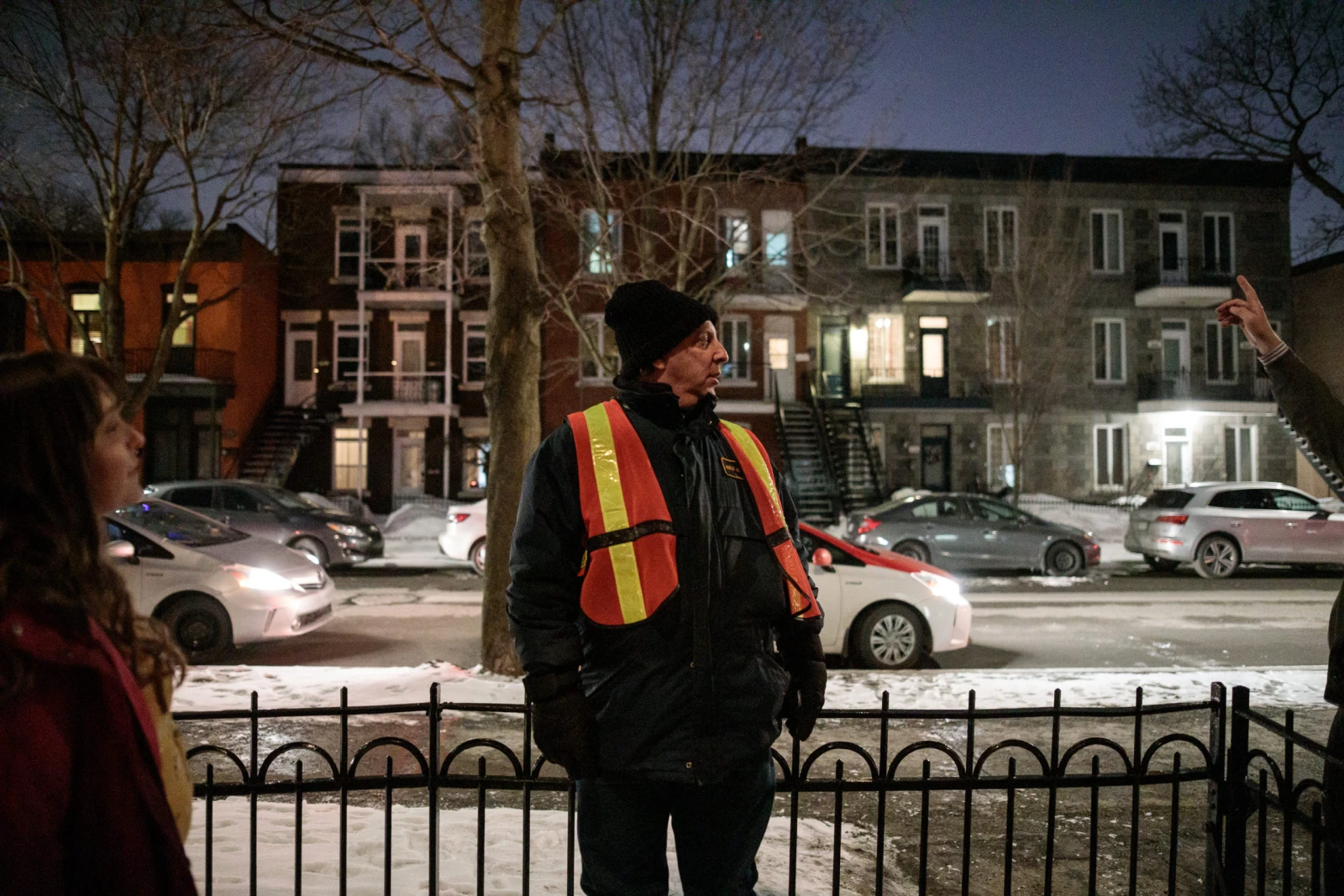 18 h 30. Les portes vont bientôt s’ouvrir et Sylvain est prêt. Comme tous les vendredis depuis 21 ans, il a enfilé son dossard orange et s’apprête à accueillir les fêtards. Certains arrivent en transports adaptés de la STM ou en taxi, d’autres de façon autonome en métro. Les véhicules défilent dans la petite rue de Saint-Vallier. Dehors déjà, il y a la file.