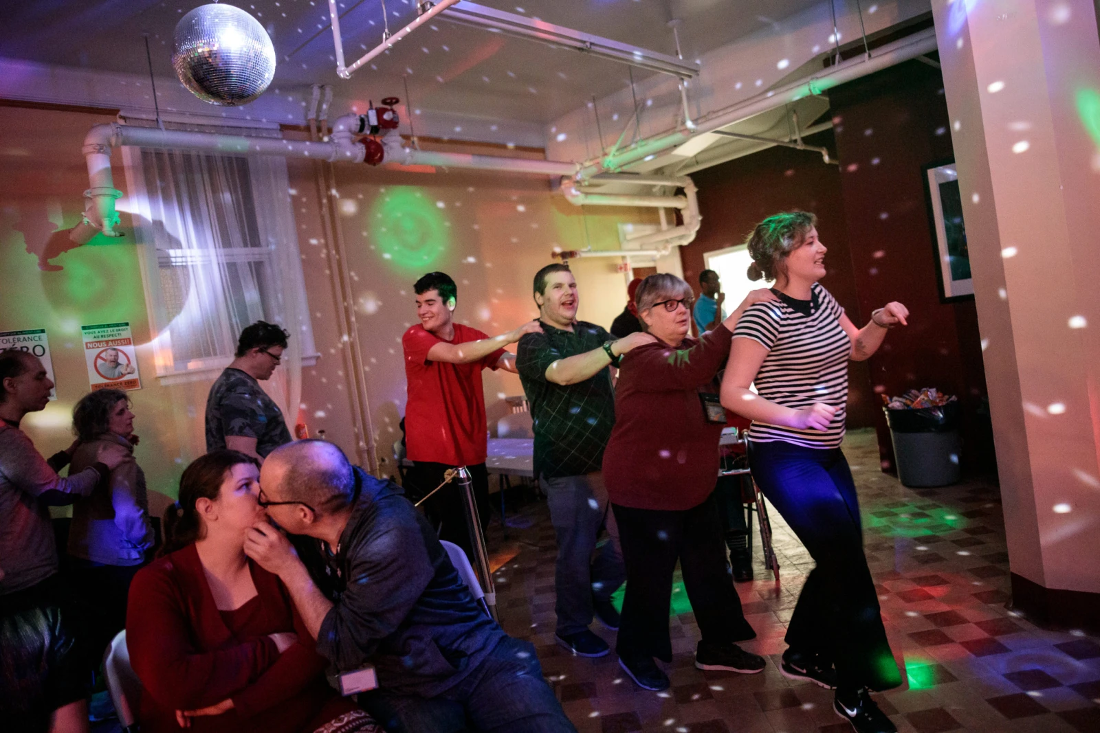 Lumière tamisée, musique dans le tapis, un vendredi soir. Une discothèque me direz-vous ? Oui, mais une discothèque adaptée. Depuis plus de trente ans, les Compagnons de Montréal transforment le sous-sol de leur bâtisse de Rosemont-la-Petite-Patrie en piste de danse inclusive et accueillent 150 personnes chaque vendredi. On est allés y faire un tour.
