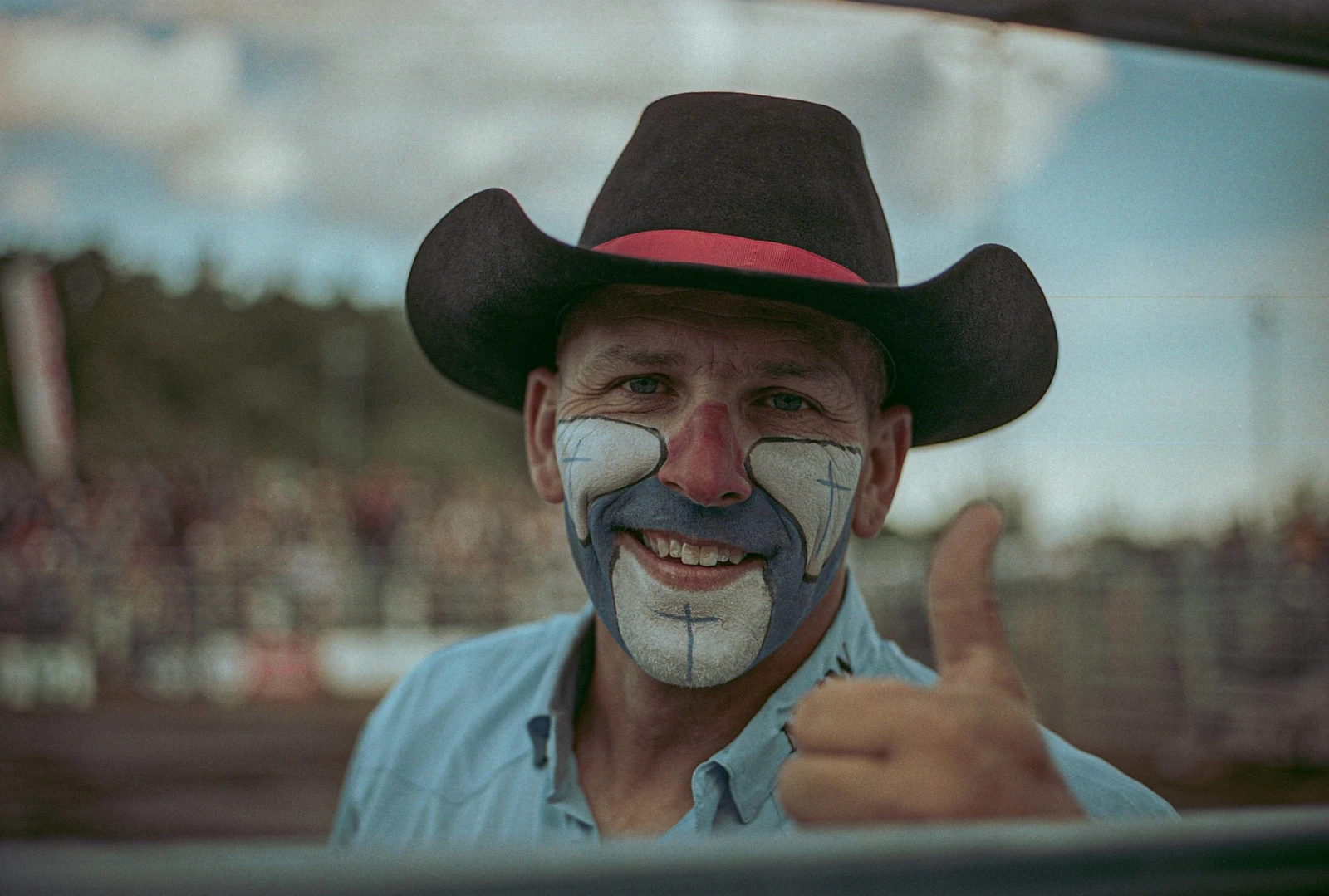 Lorsque le cowboy chute, il doit faire fi de la douleur et se relever d’un bond pour éviter d’être encorné. Les clowns sont alors nécessaires pour diriger la menace vers eux. Ils tentent de toucher la bête, la provoquent avec leurs acrobaties.