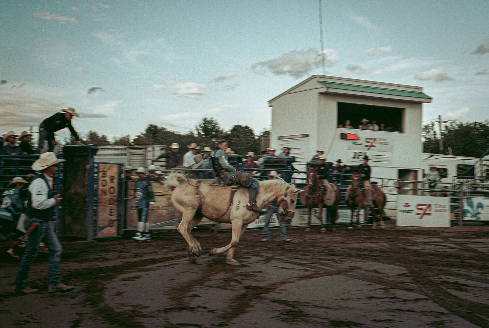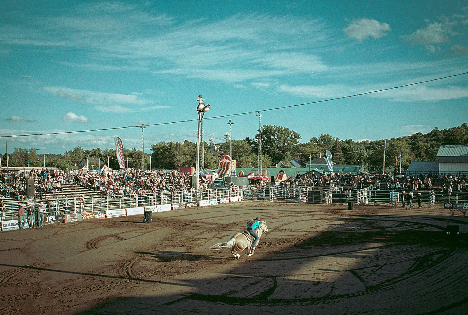 Dès l’arrivée dans la municipalité, on se laisse emporter par le folklore western en place. Chevaux, tracteurs et gros pick-up se côtoient naturellement. Le village, qui entretient une vieille culture équestre, revêt pour l’occasion ses plus beaux habits de festivalier. Vingt-cinq mille enthousiastes sont attendu.e.s au courant de la fin de semaine. Sur la terrasse bondée de l’auberge, des shots de whisky sont descendus sans effort.