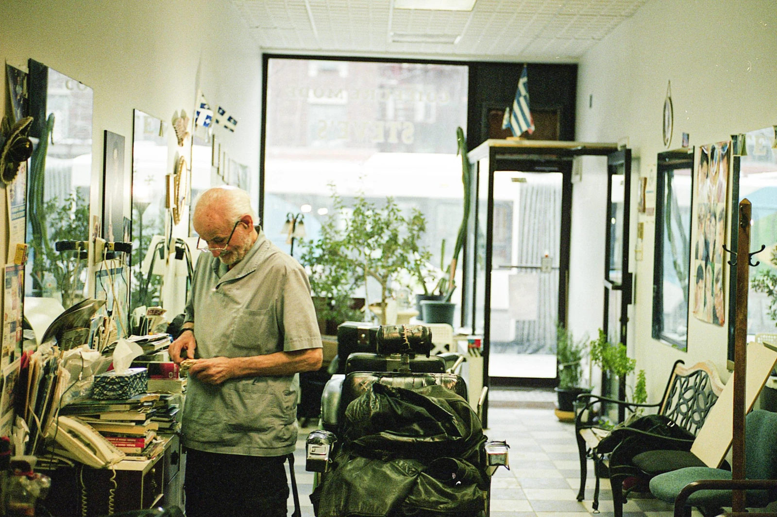 Le petit salon s’inscrit dans la tradition de ces lieux sans âge – souvent tenus par de vieux immigrants qui ne veulent pas accrocher leurs séchoirs – comme il en reste un encore à Montréal, résistant à la modernité par la poussière et l’hospitalité, argent comptant seulement.