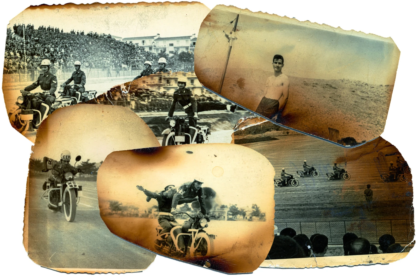 Les chutes sont toutefois fréquentes. Les blessures, sérieuses. Des accidents graves causant des fractures, des commotions, transformant des motos en pertes totales. Le barbier me montre ses cicatrices de brûlure sur une jambe. « Il fallait garder la réputation de durs au sein de la division et c’était bien vu d’être aussi casse-cou », dit-il non sans fierté.