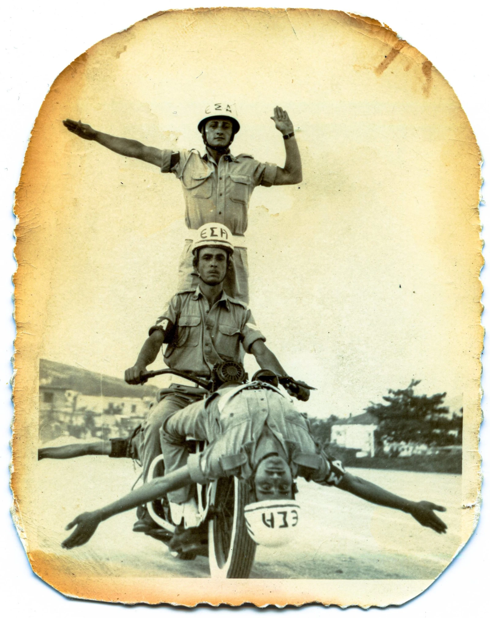 Peu à peu, le jeune homme prend ses aises sur deux roues et pratique des acrobaties. Il se découvre un certain talent et carbure autant à l’adrénaline qu’à la créativité des manœuvres qu’il peaufine avec ses compagnons. Bien rares sont les militaires qui peuvent égaler son audace. Il est toujours le premier volontaire pour tanguer au sommet des pyramides. Après les répétions, la troupe bifurque parfois pour se pavaner au village, faisant tourner les regards. Le bataillon se fait de plus en plus motard.